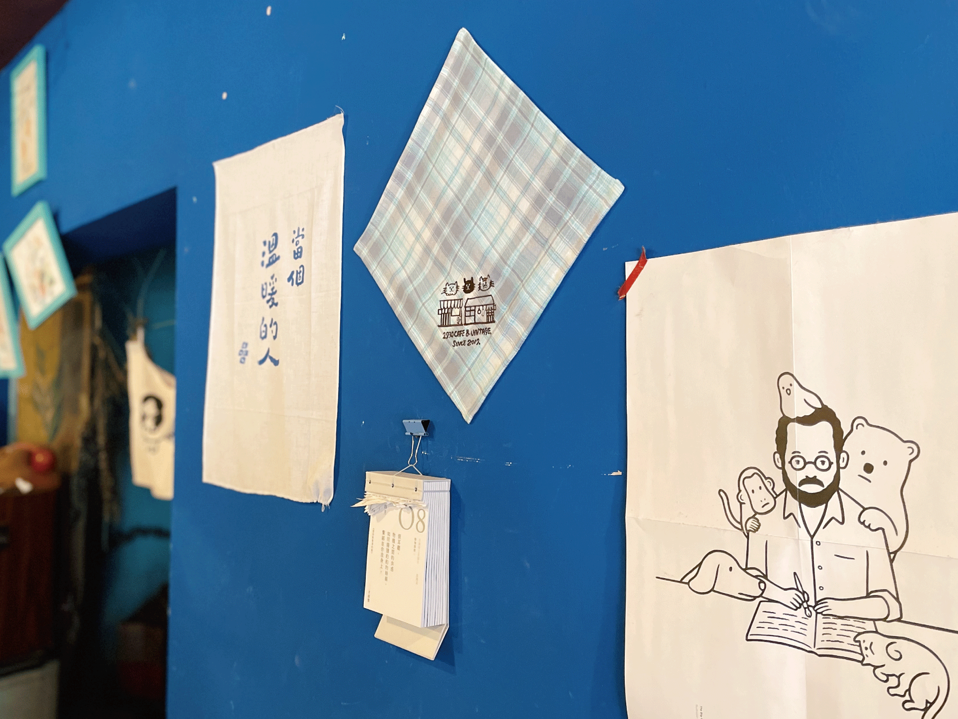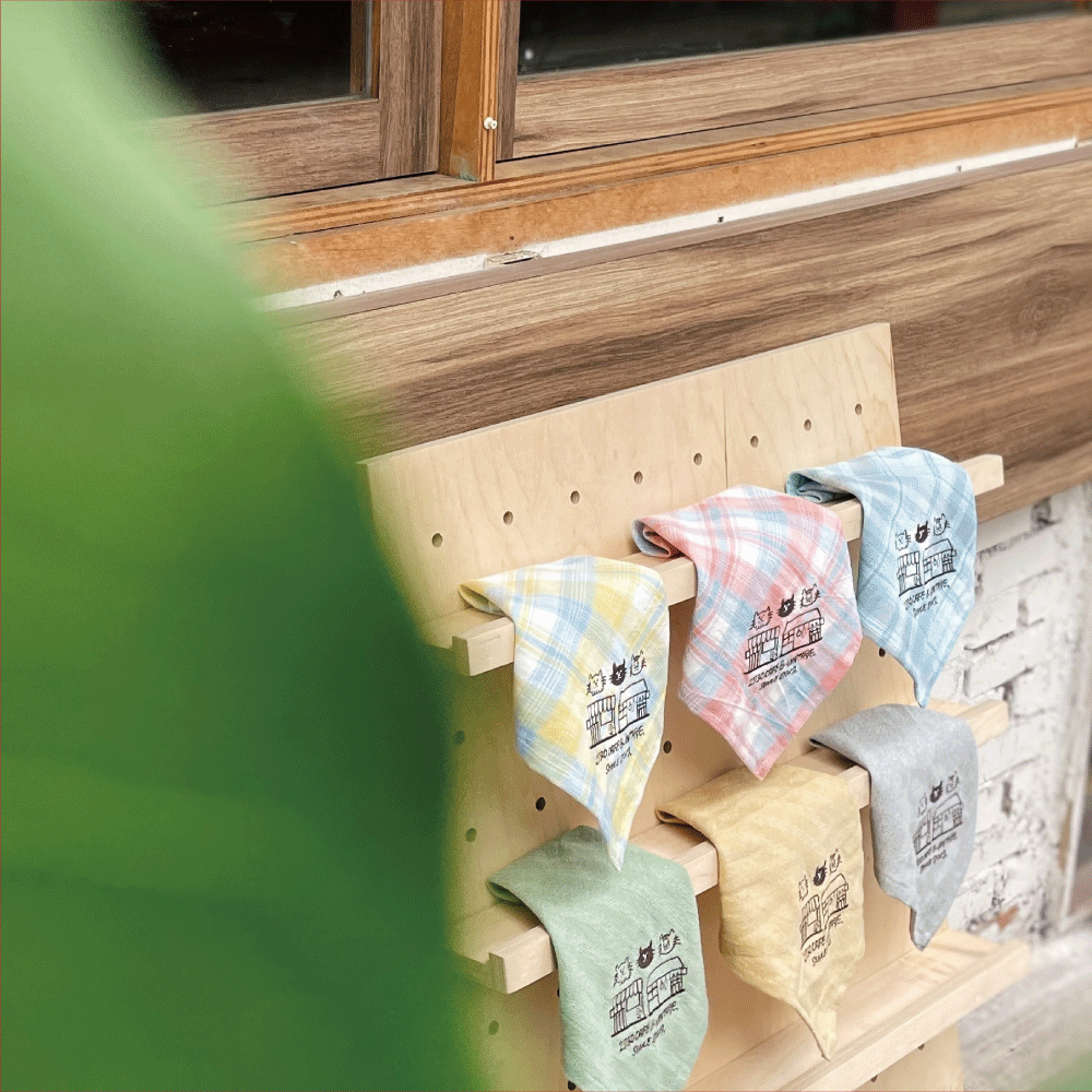 小方巾的原料使用寢具製作時餘下的布料,加上2730最重要的老屋跟貓咪紀念圖,讓無法再成為寢具的布料們,擁有了新的意義,找到了安放的地方,就像每個人的故事,使這裡閃閃發光。