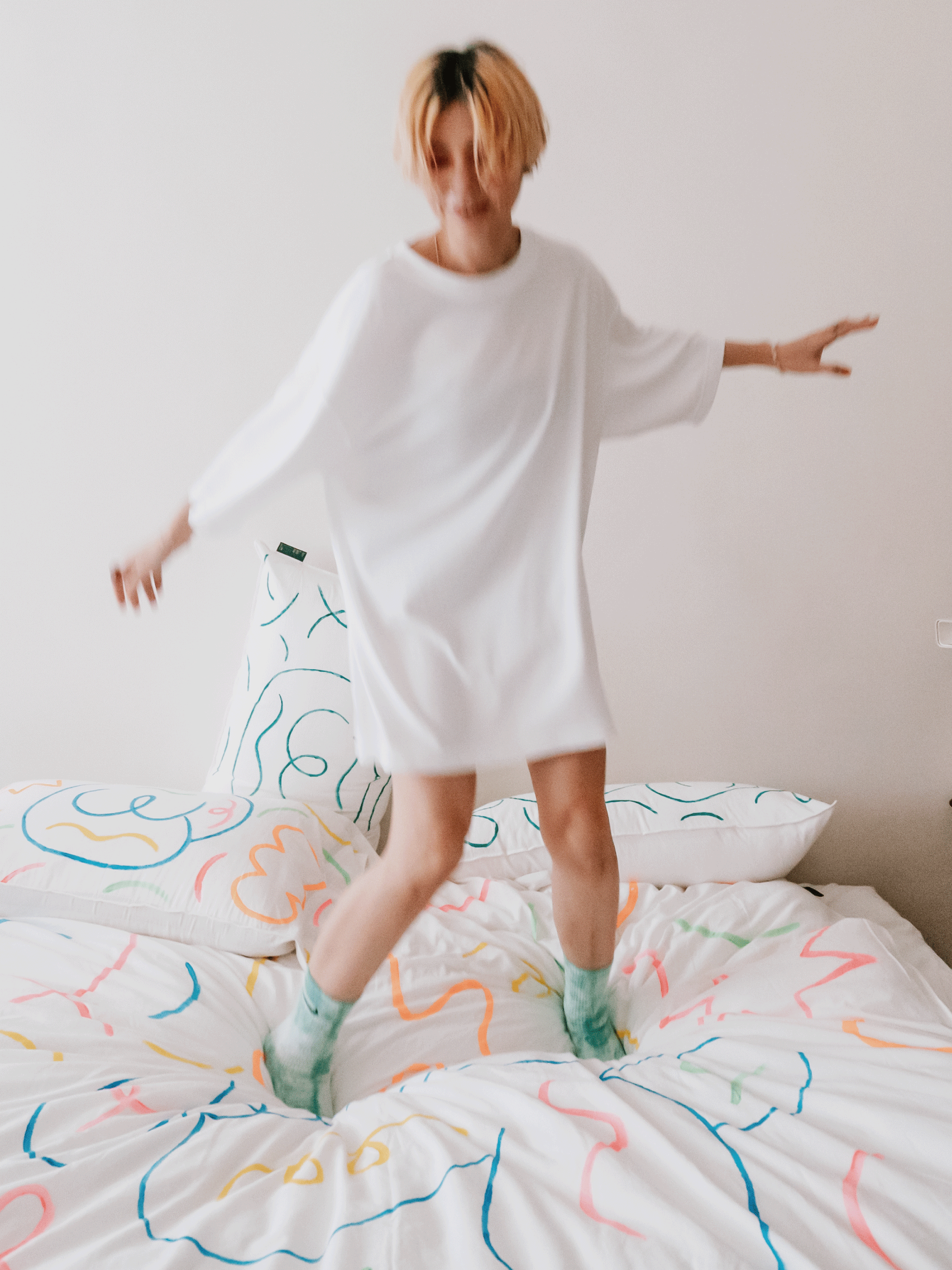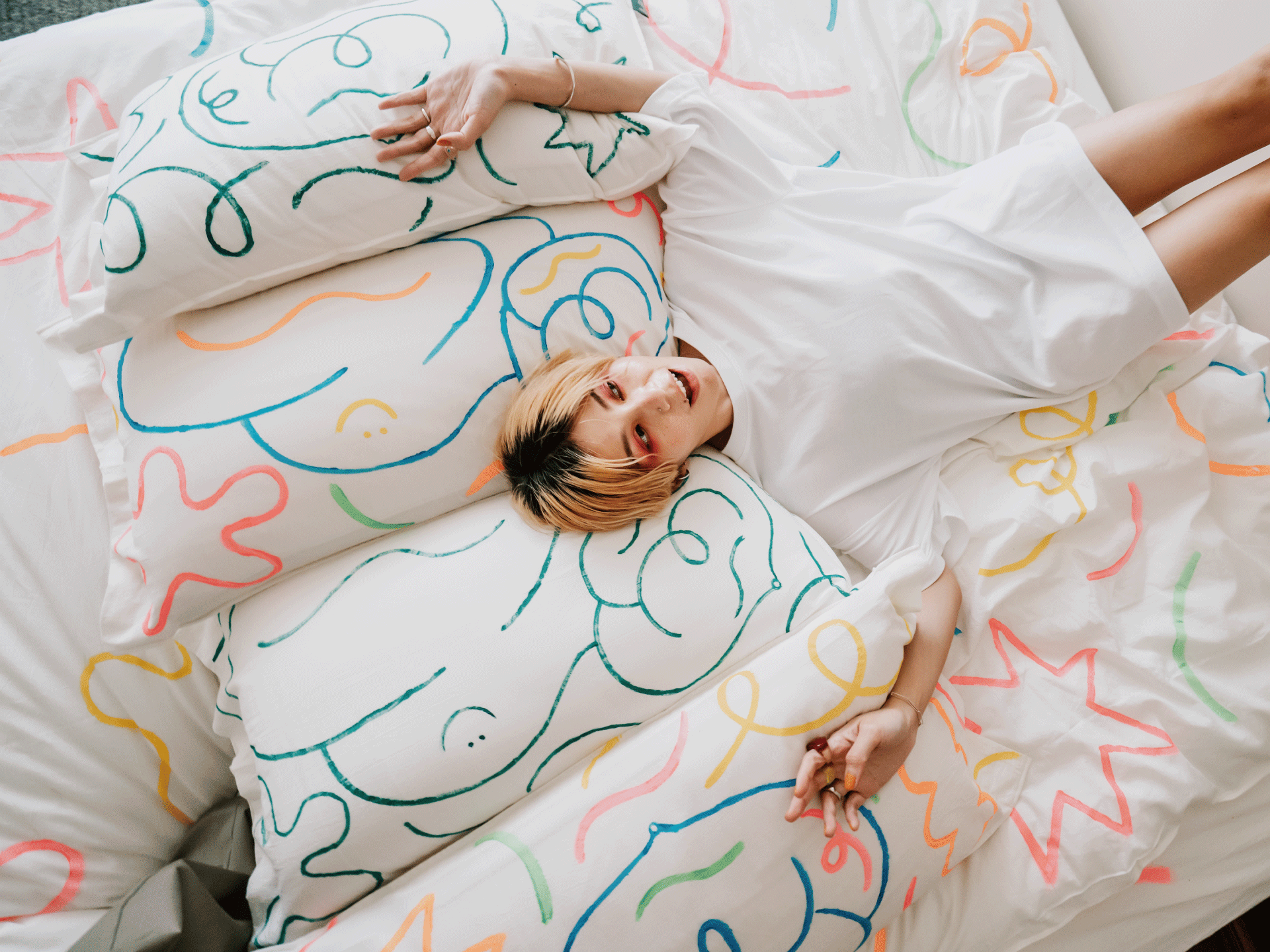 今年兒童節,我們邀請周依一起創作,把好關係的白色寢具當成畫布,開心自由地畫,想畫什麼就畫什麼;在鋪著好關係寢具的床上,放心放鬆地玩,想玩什麼就玩什麼。