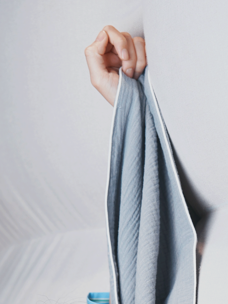靈感來自清晨薄霧般的靜謐灰色,低調沉穩,營造寧靜舒眠氛圍。搭配奶油白色束口袋,整體風格簡約柔和,輕鬆融入多數居家色調。