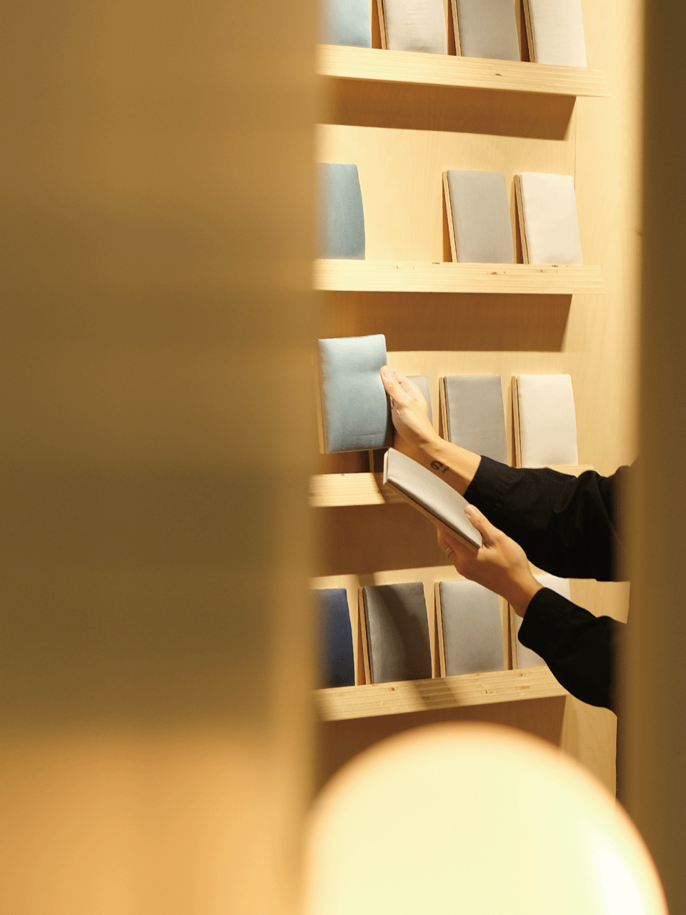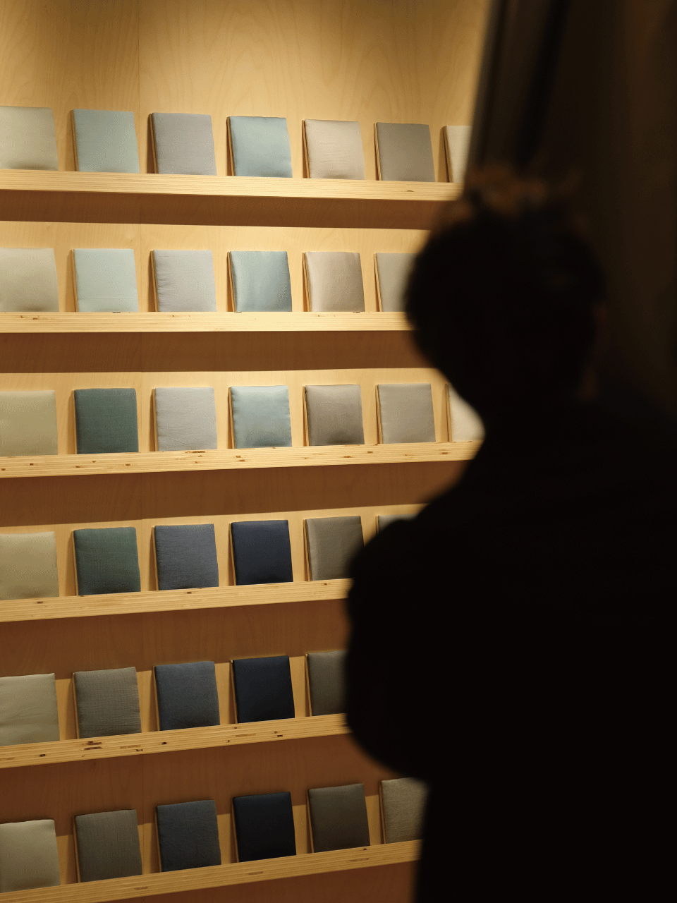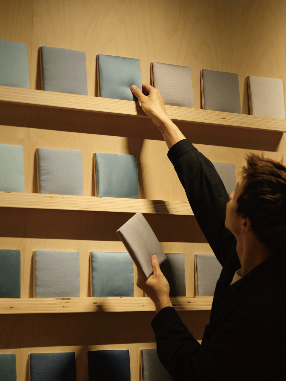 我們將品牌歷年來的經典設計化為靈感,打造出這面經典布片牆,讓你自由挑選材質與色彩,搭配專屬配色網站,將設計的想像轉化為具體視覺。這不只是「挑選」,而是一段屬於你的創造與搭配過程。