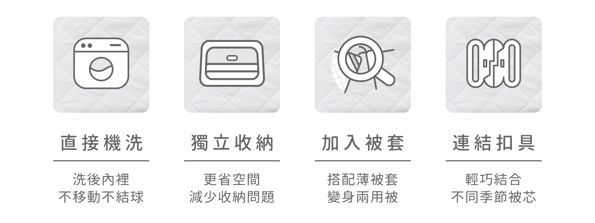 好的被芯不僅能保暖,也能吸汗調節體溫,藉此提升睡眠品質!