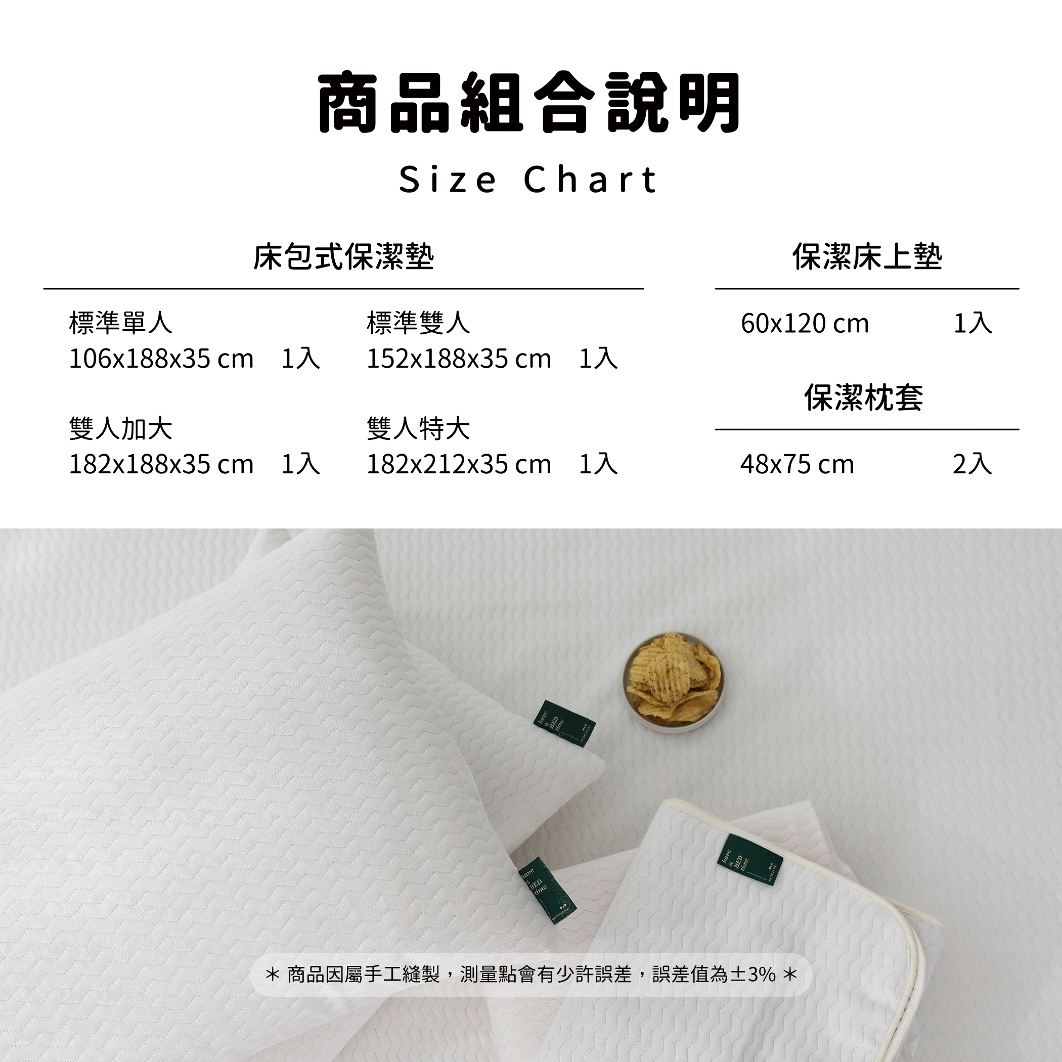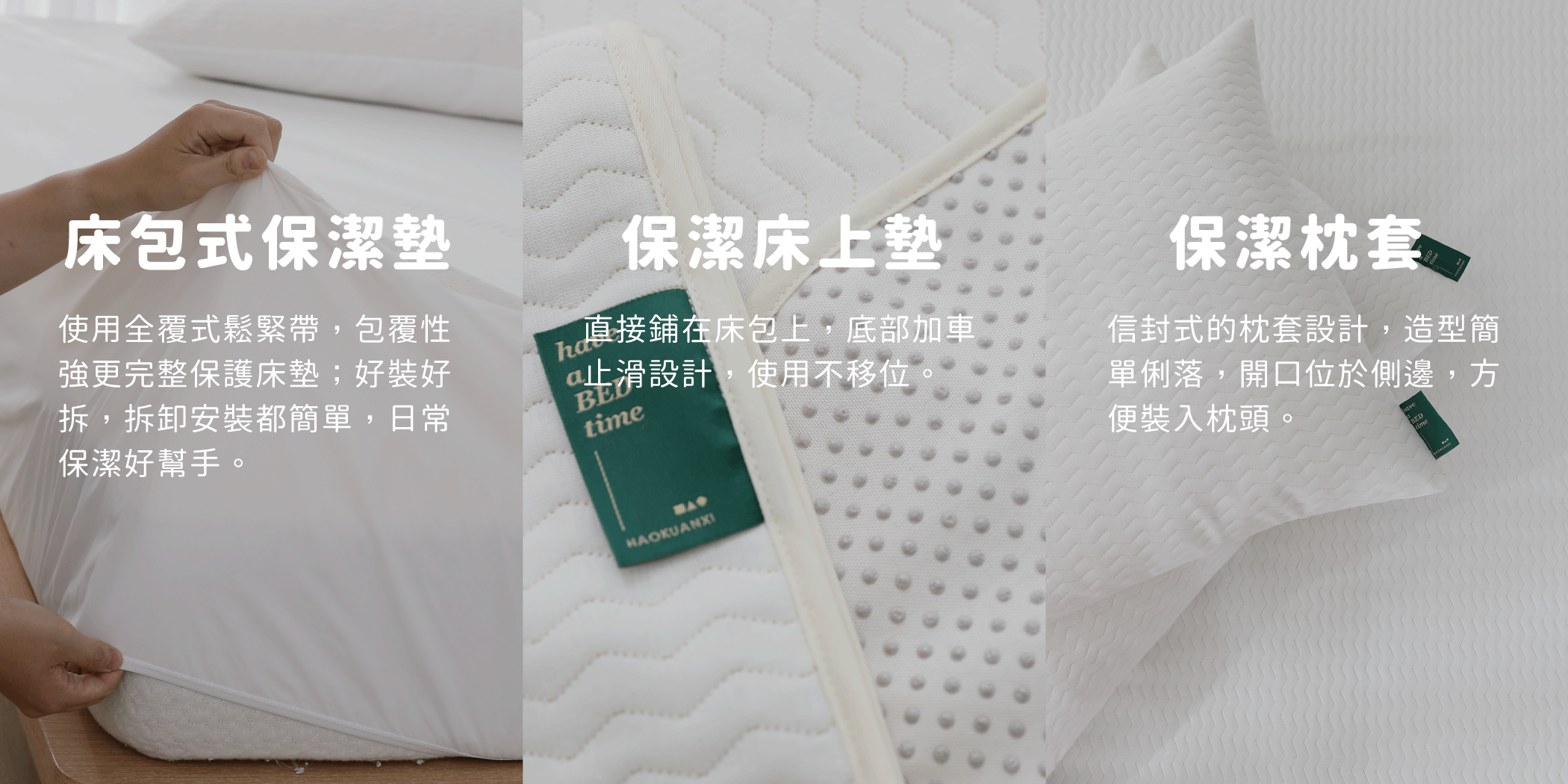品項選擇:床包式保潔墊、保潔床上墊、保潔枕套