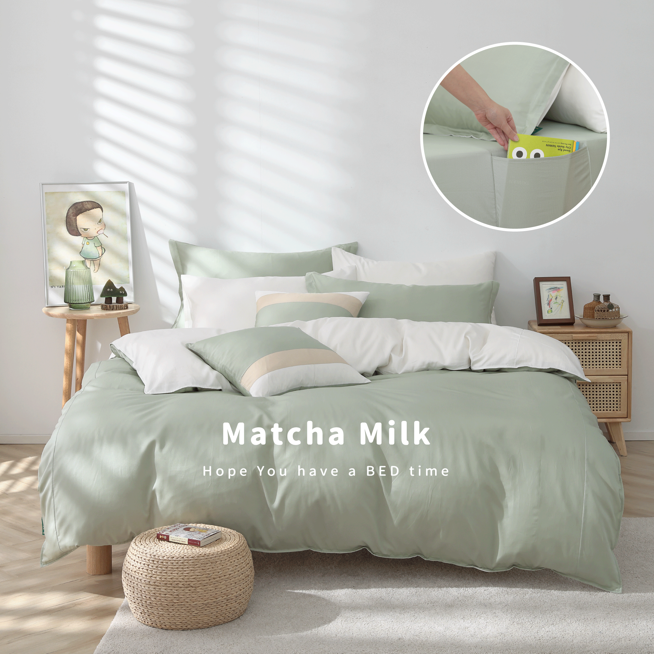 抹茶牛奶-新天絲棉床邊口袋經典四件組 ✨ 胤翔選用款