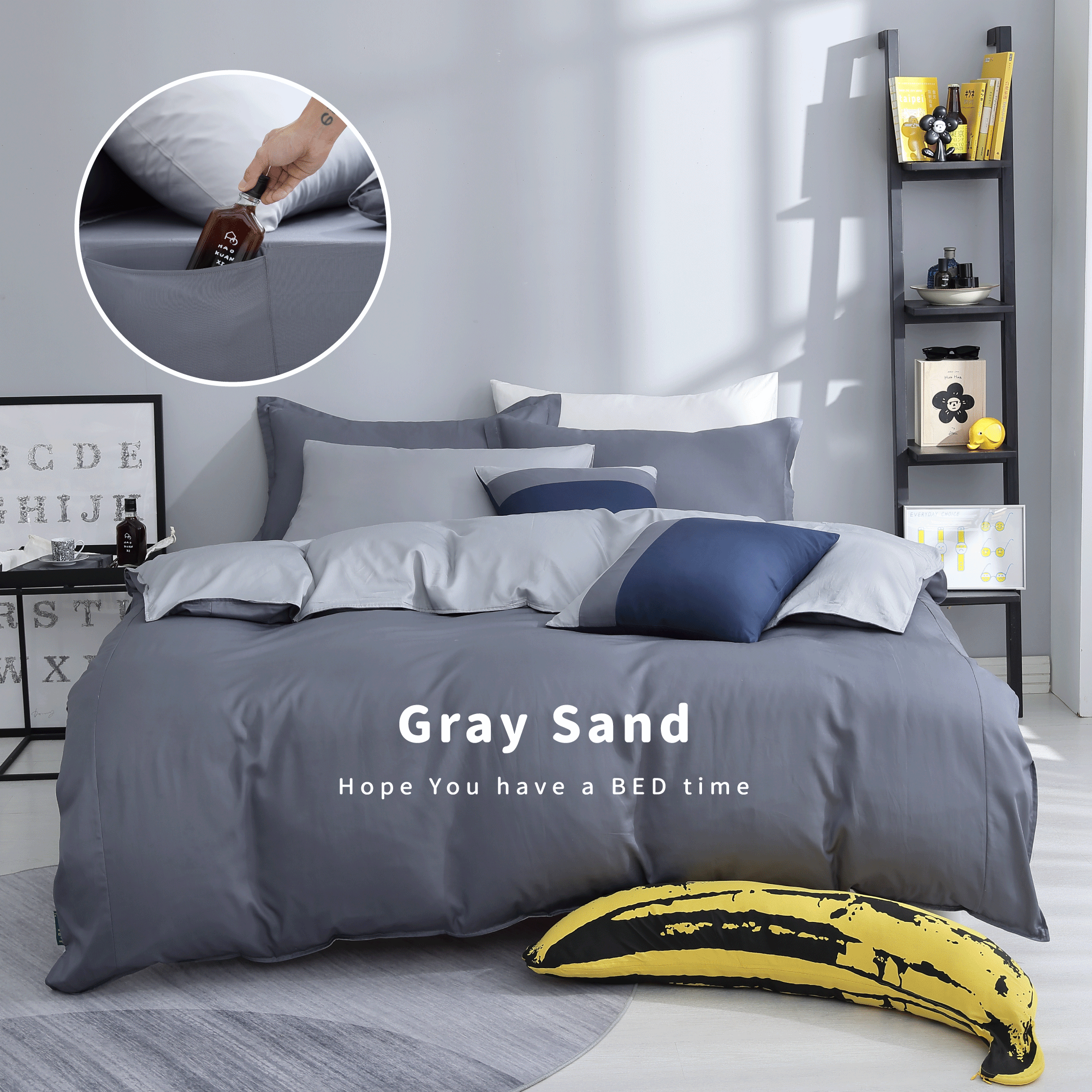 組合內含:沙灰色床包 1 入、雙色薄被套 1 入、雙色枕套 2 入