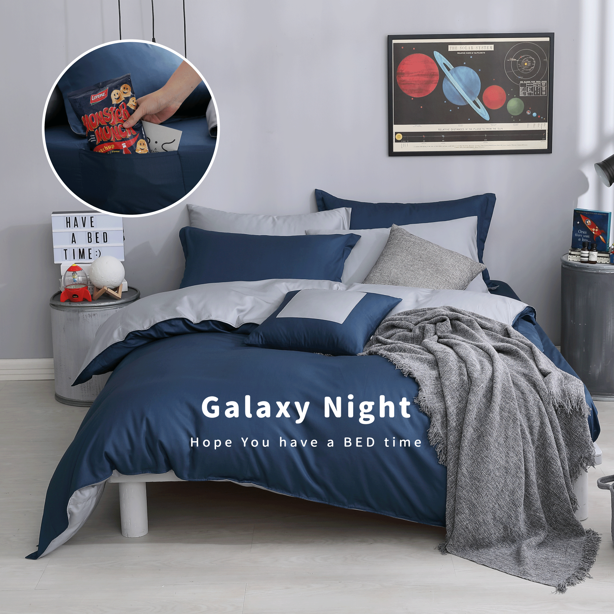 銀河夜空-新天絲棉床邊口袋經典四件組