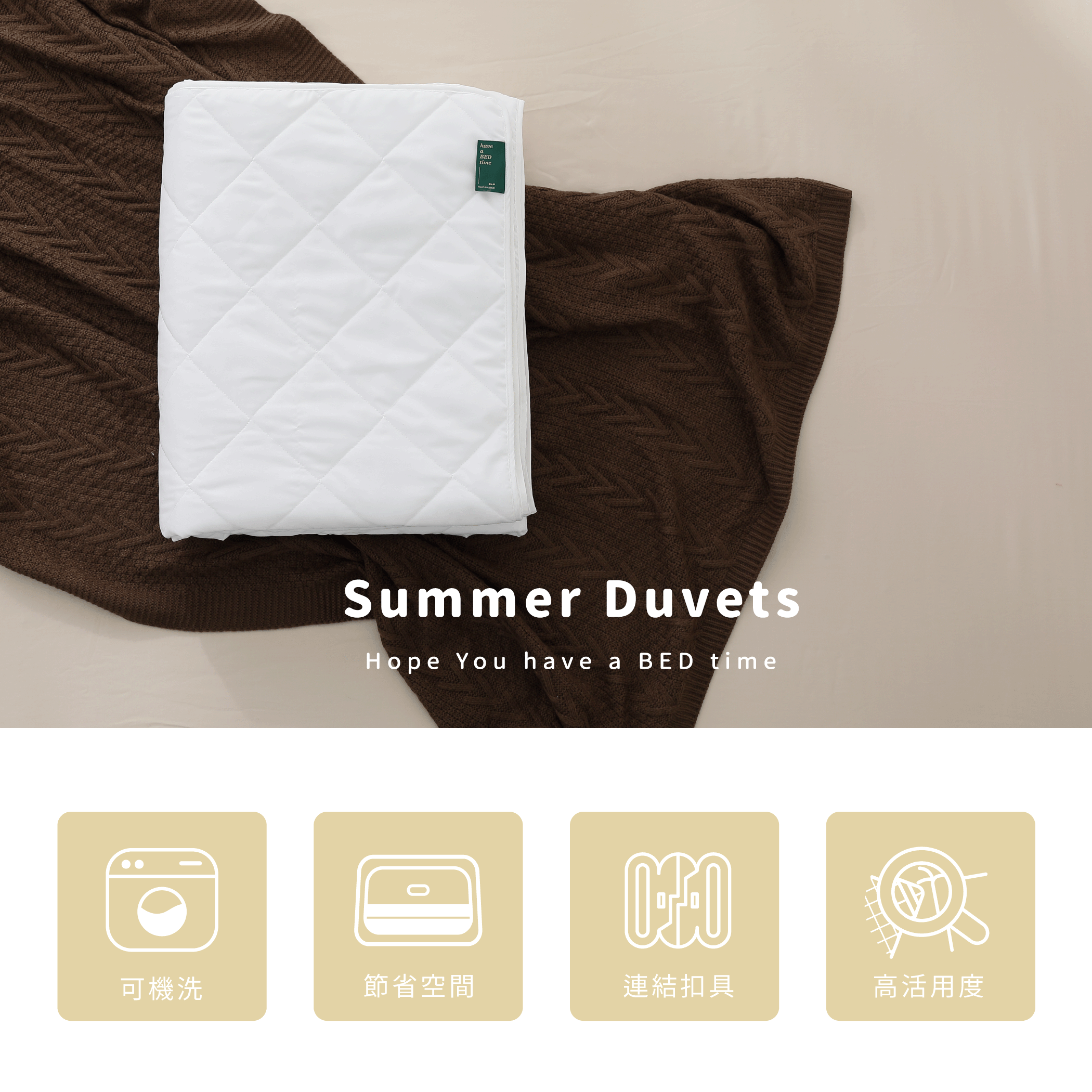 A:經典四件組的組合都是薄被套組,建議搭配「可水洗夏被芯」使用。夏被芯裝進薄被套,具兩用被功能外,收納省空間,洗滌清潔更方便。