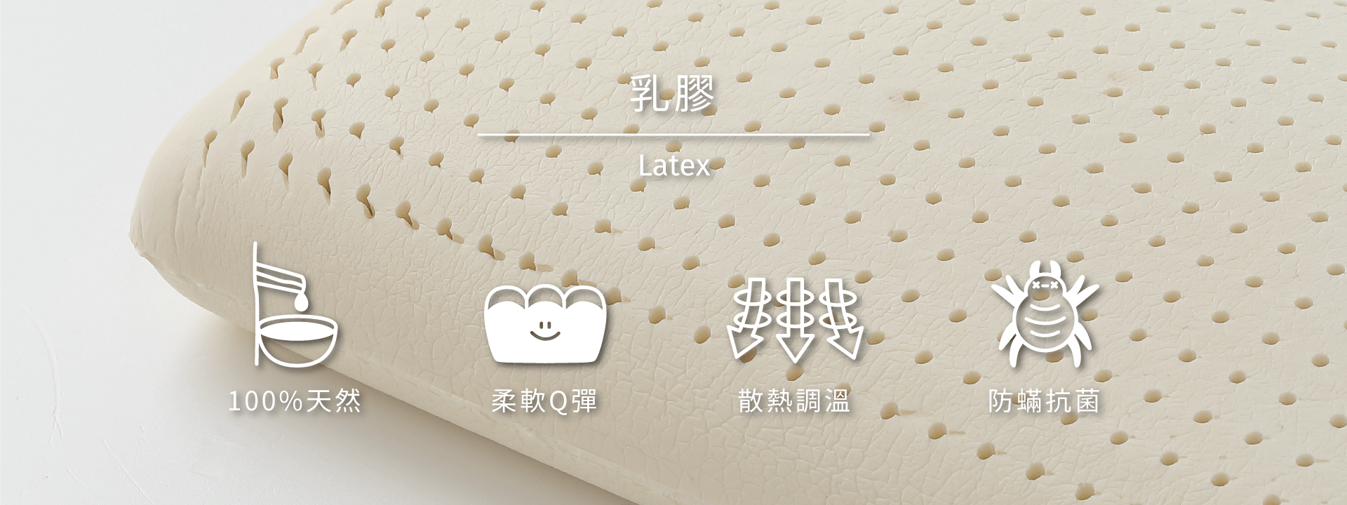 純天然乳膠本身具有防蟎抗菌功效,可有效防止蟎蟲及細菌滋生,不易引起過敏。