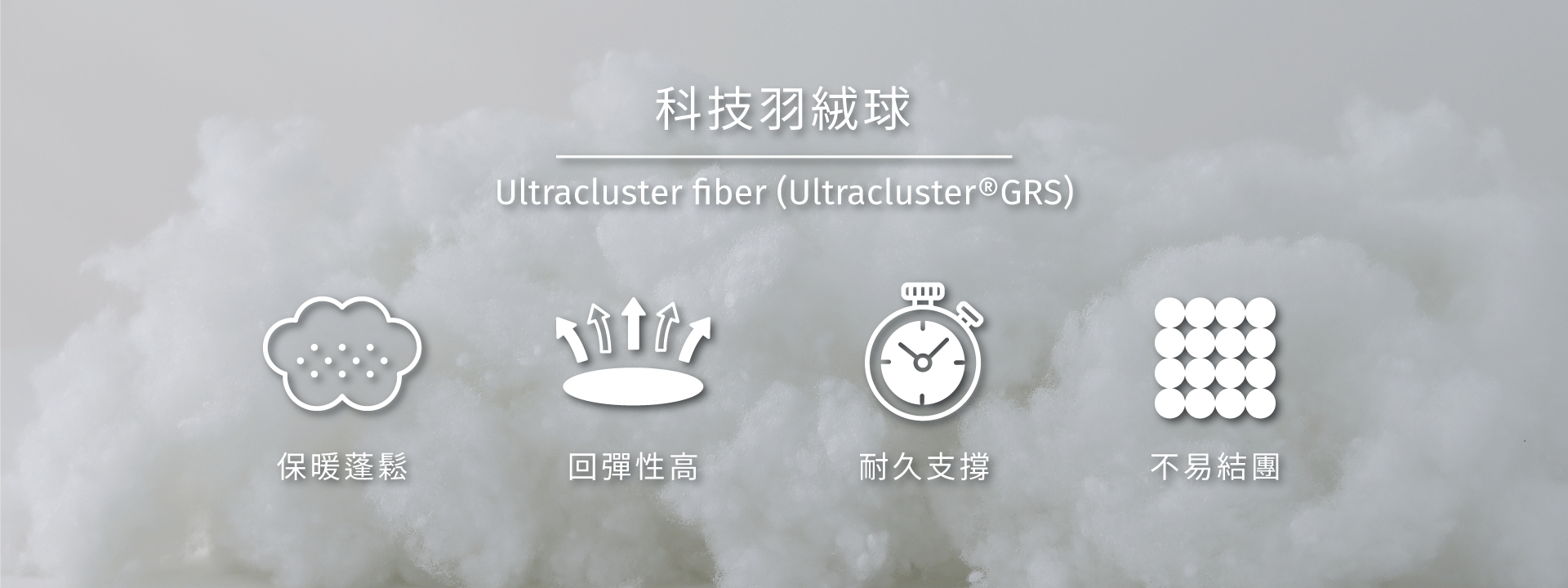 Ultracluster®GRS,是纖維球結構中最接近羽絨結構的聚酯纖維 (超細纖維)。