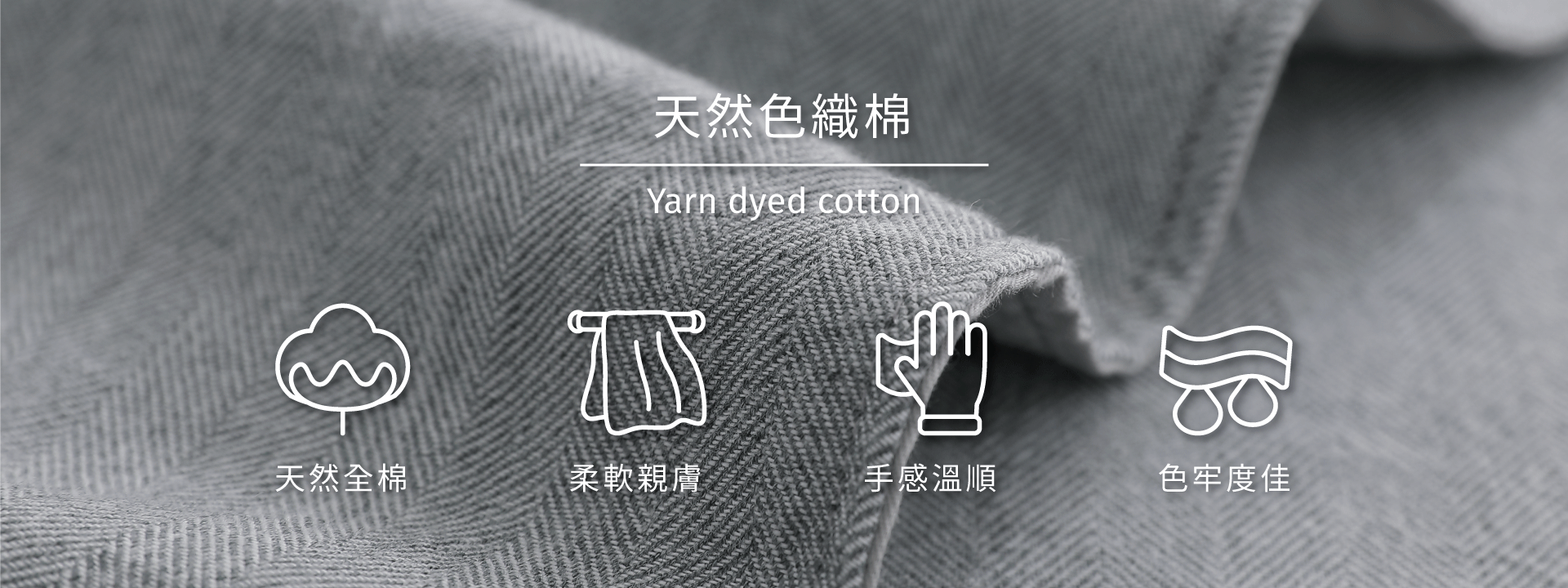 織造過程採先染後織工法,先將紗線染色,再使用有色紗線來織布,故名為色織布。色織布料手感較為厚實、更為棉感、觸感也更溫順。