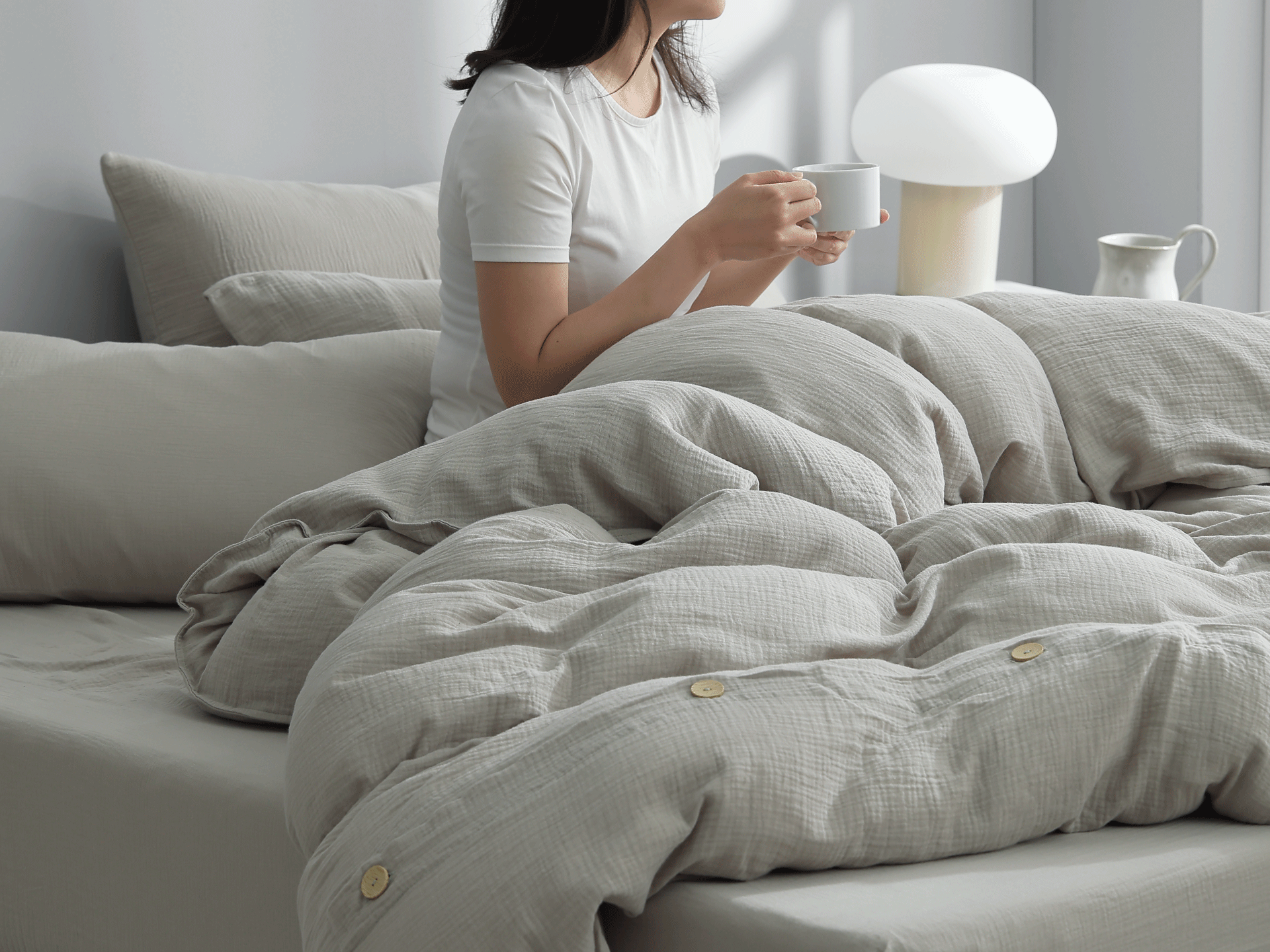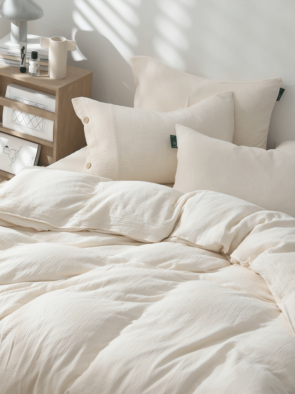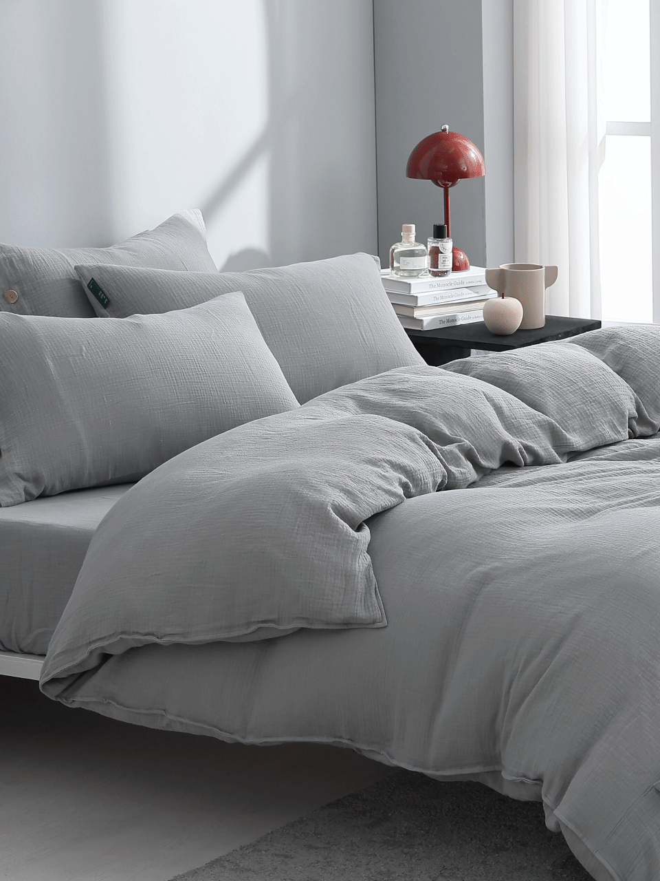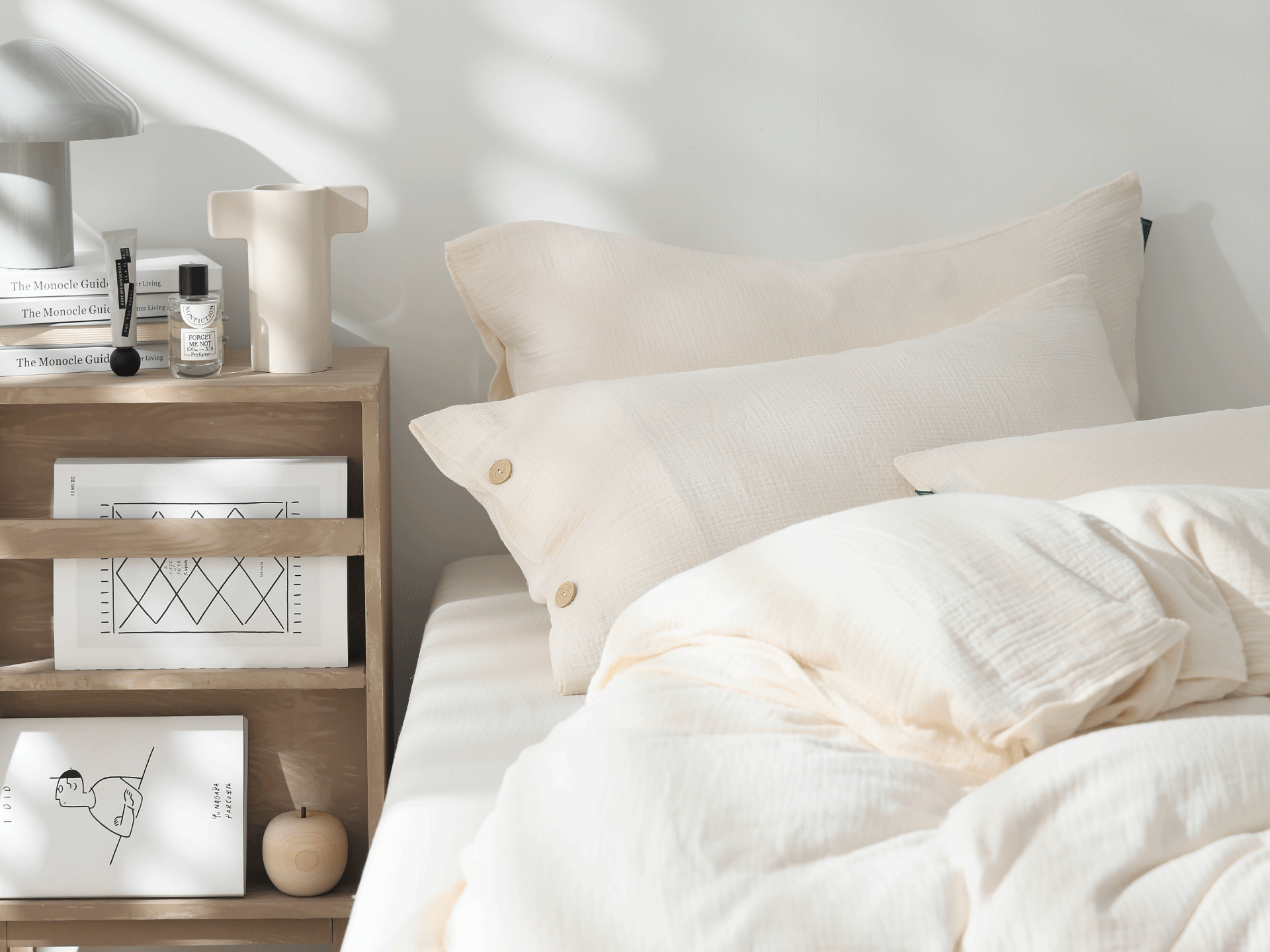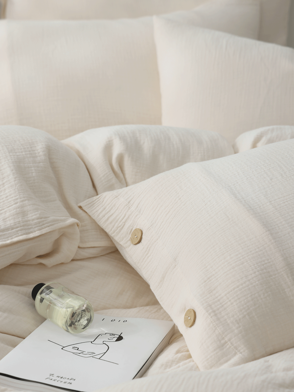 延續《靜謐自然》的舒適體驗,這次的寢具依然選用了親膚的二重紗,細緻的雙層結構讓布料蓬鬆透氣,如空氣般輕盈,卻帶著恰到好處的溫暖。每一寸柔軟的紋理,都承載著時間的溫柔痕跡,觸碰時,彷彿能感受到來自大自然的安撫。我們也特別挑選了更柔和的色系,讓視覺與觸感都能同步放鬆,為日常帶來寧靜的片刻。