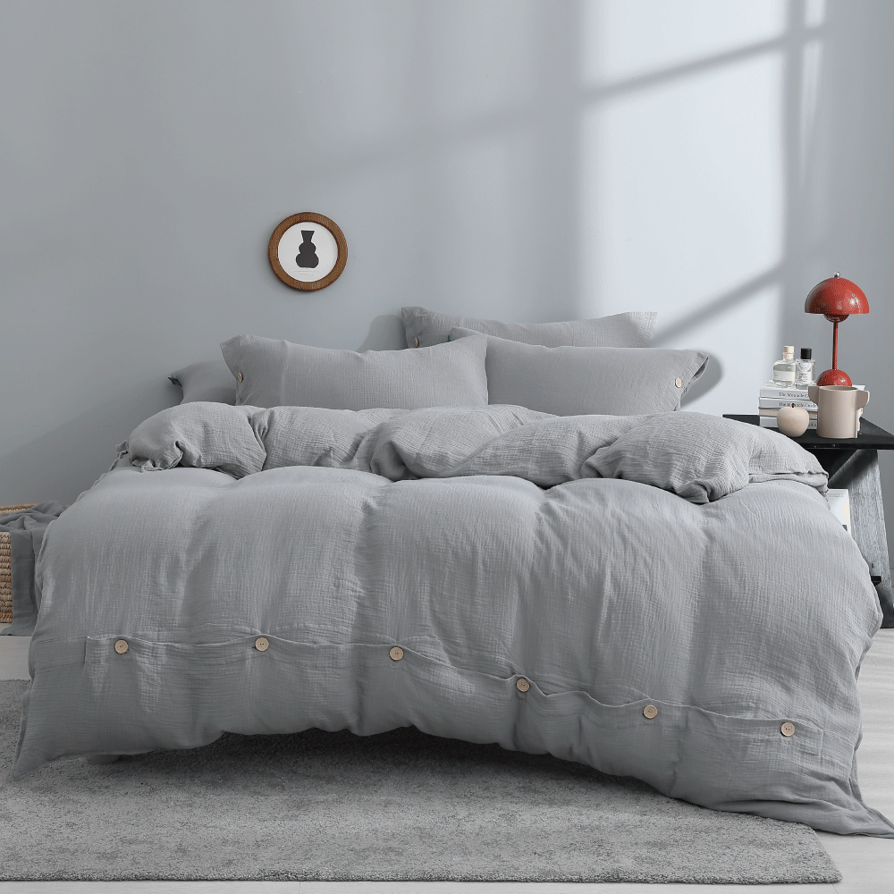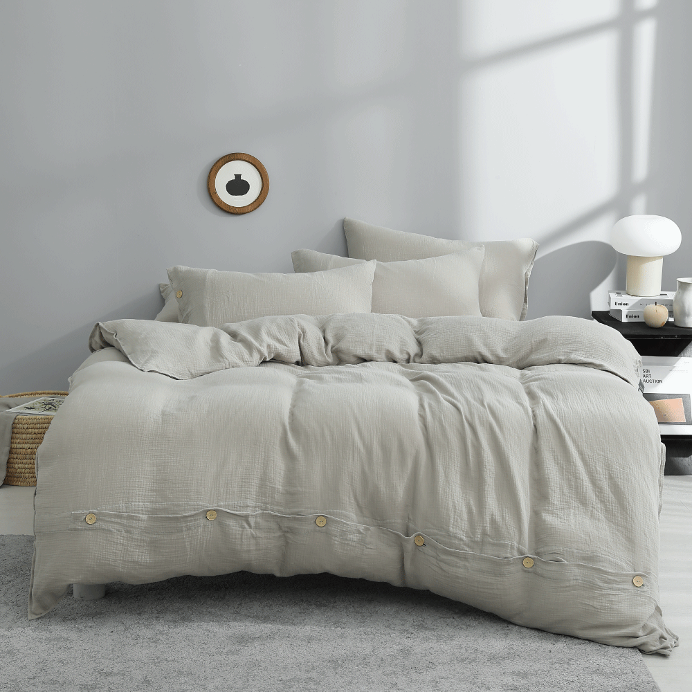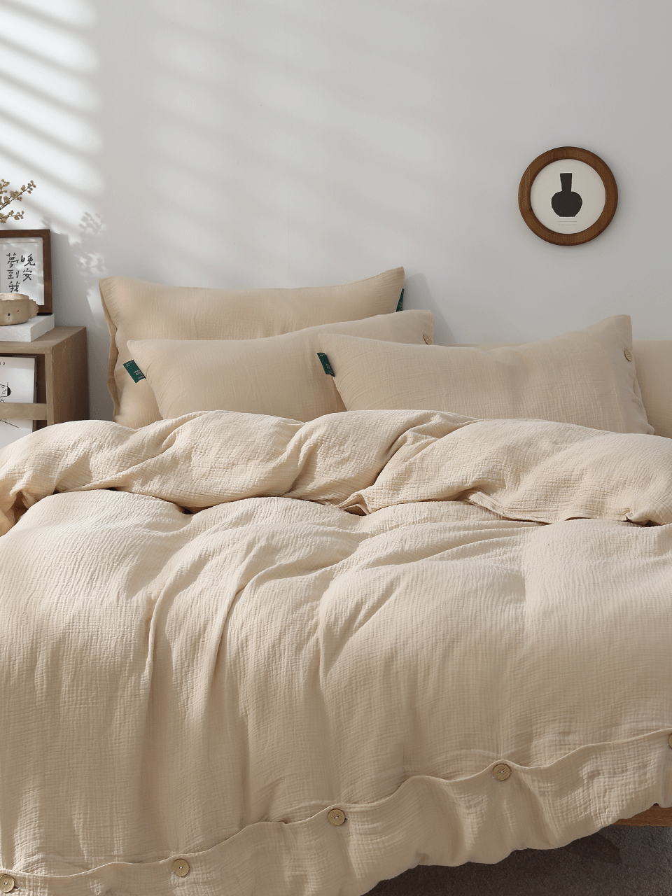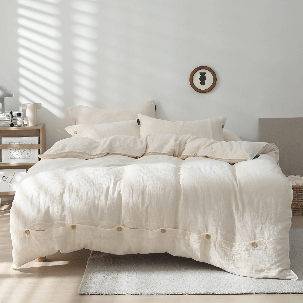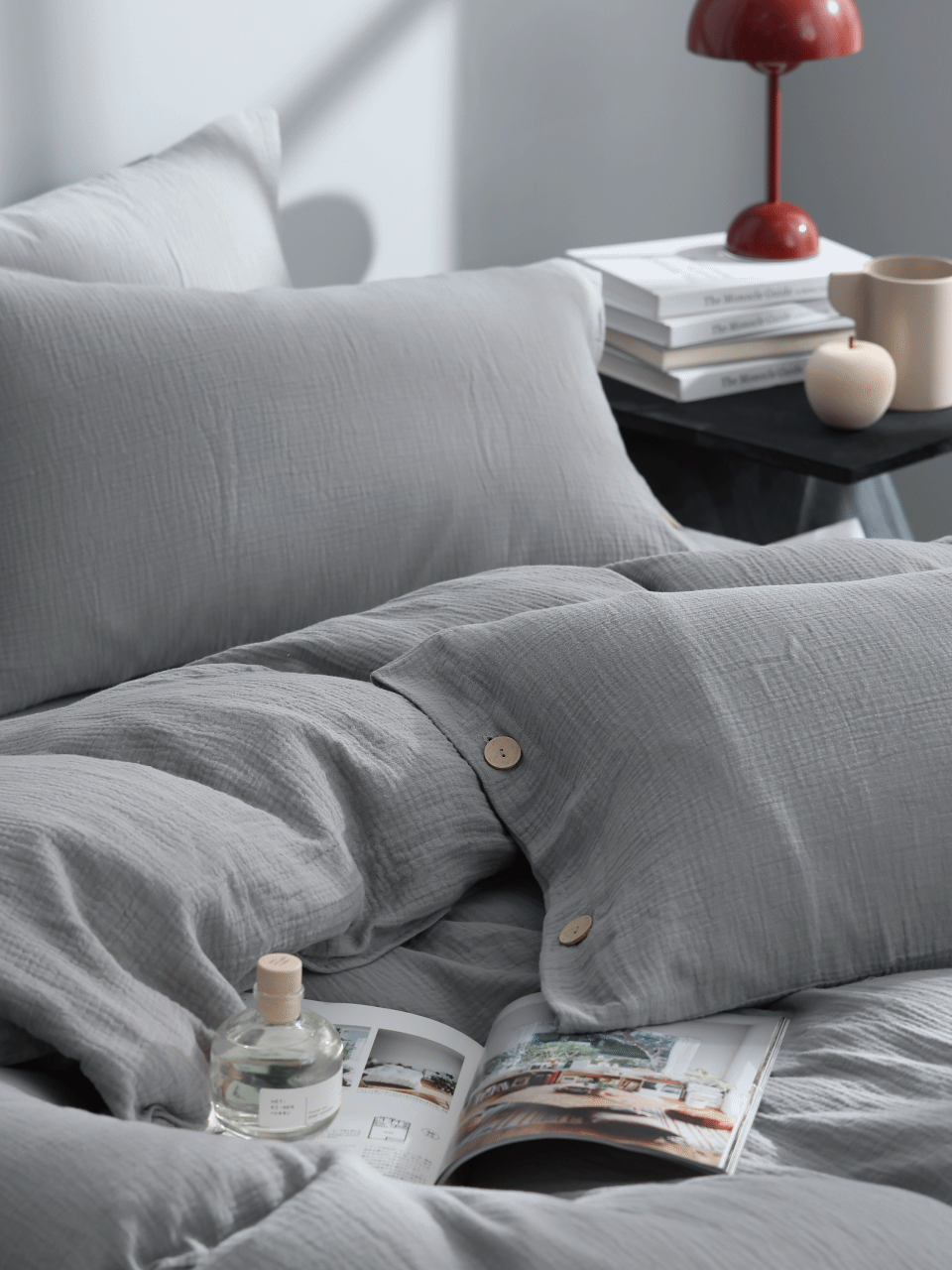 延續《靜謐自然》的舒適體驗,這次的寢具依然選用了親膚的二重紗,細緻的雙層結構讓布料蓬鬆透氣,如空氣般輕盈,卻帶著恰到好處的溫暖。每一寸柔軟的紋理,都承載著時間的溫柔痕跡,觸碰時,彷彿能感受到來自大自然的安撫。我們也特別挑選了更柔和的色系,讓視覺與觸感都能同步放鬆,為日常帶來寧靜的片刻。