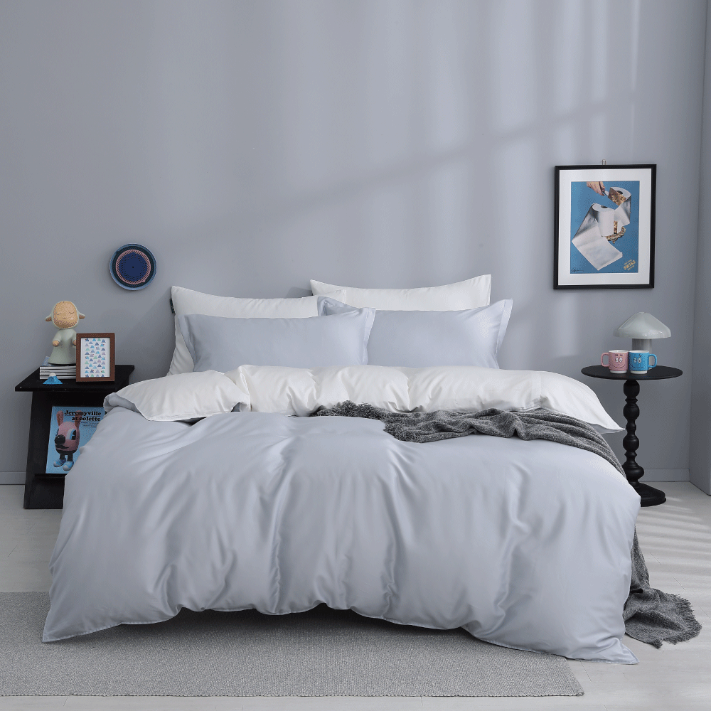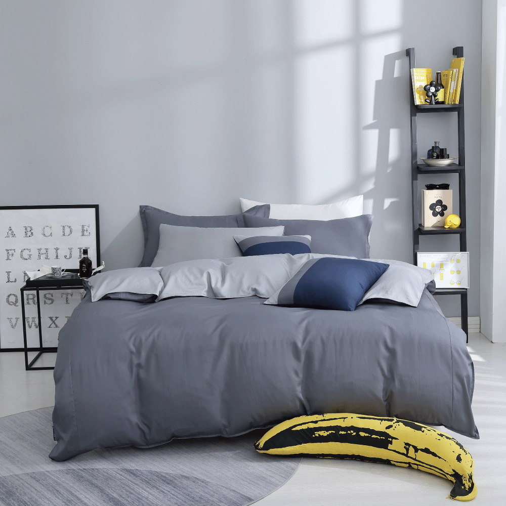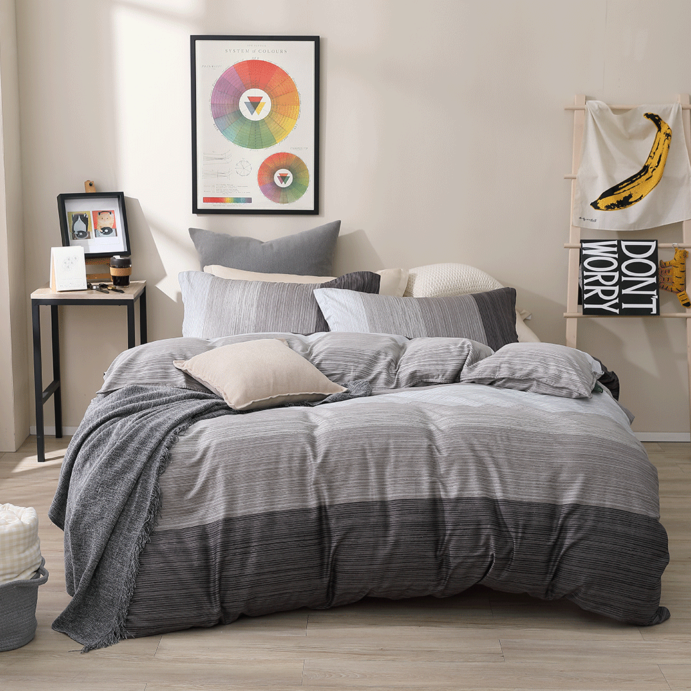 二重紗貝殼灰格分享被,一起蓋不搶被。