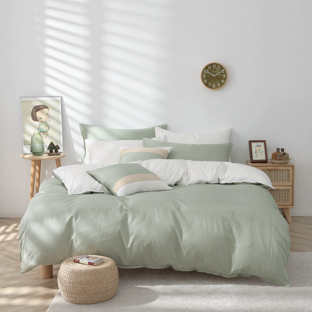 二重紗蜜瓜綠格分享被,一起蓋不搶被。