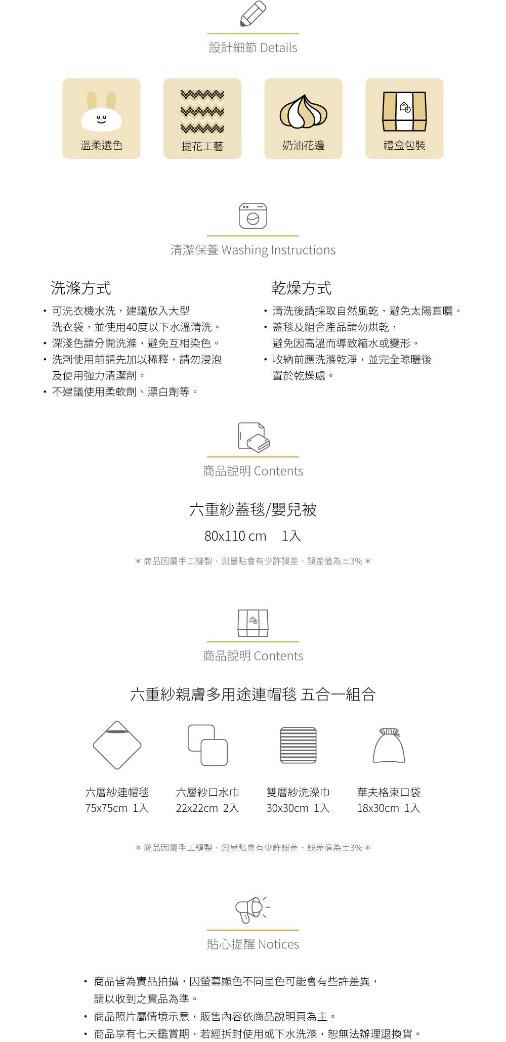 ⭐ 六重紗親膚多用途連帽毯 五合一彌月禮盒