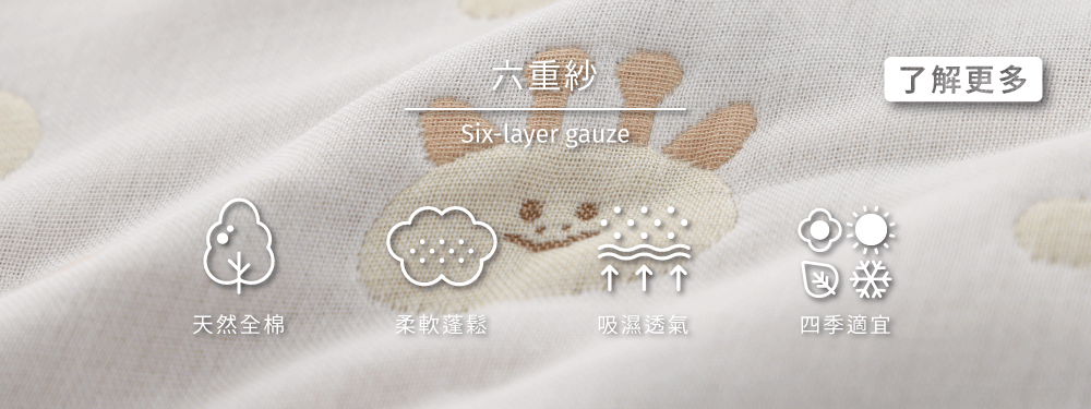 .材質嚴選六重紗 天然全棉柔軟親膚