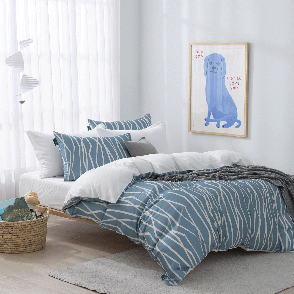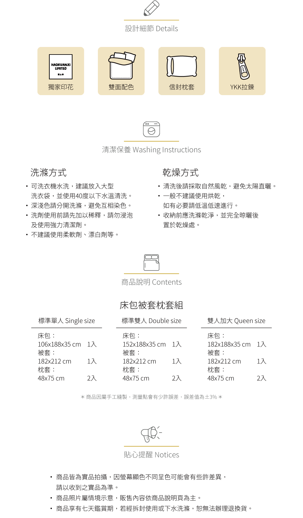 組合內含:床包 1 入、薄被套 1 入、枕套 2 入。