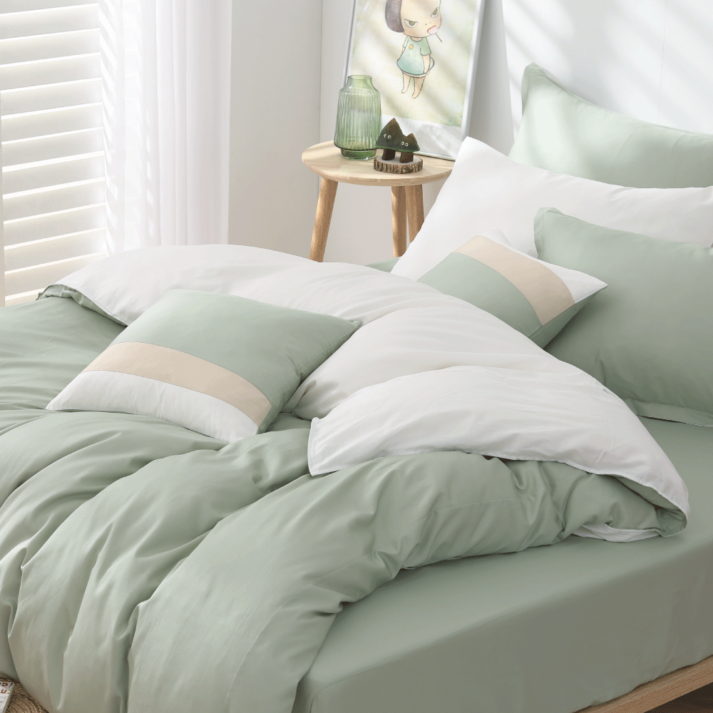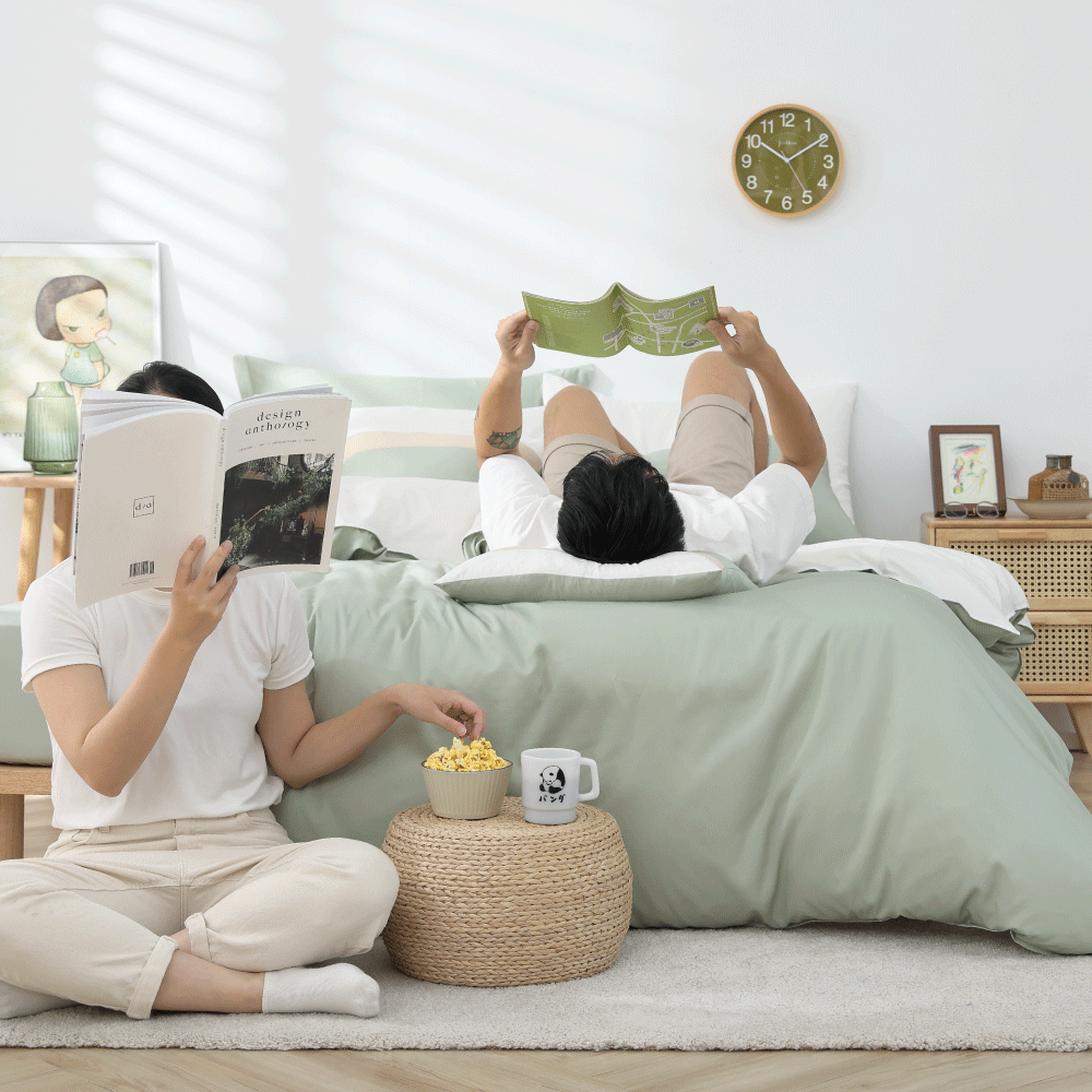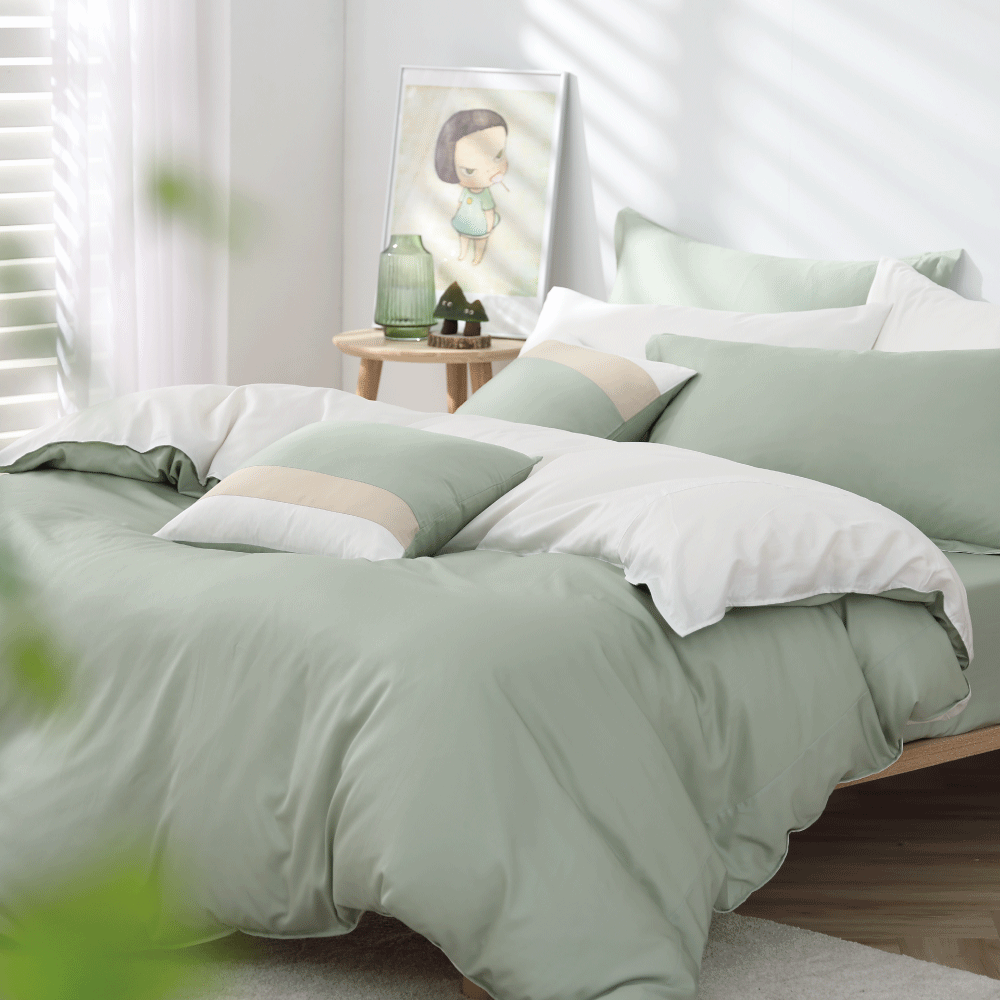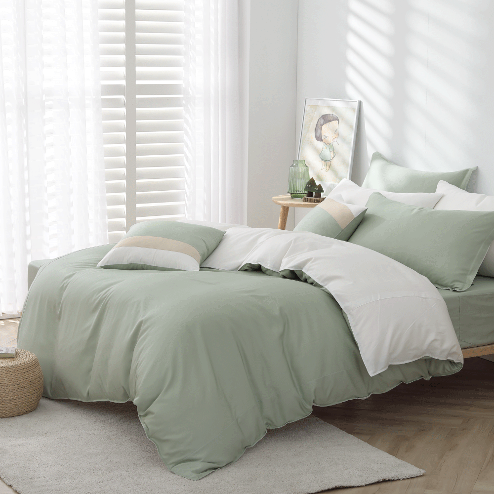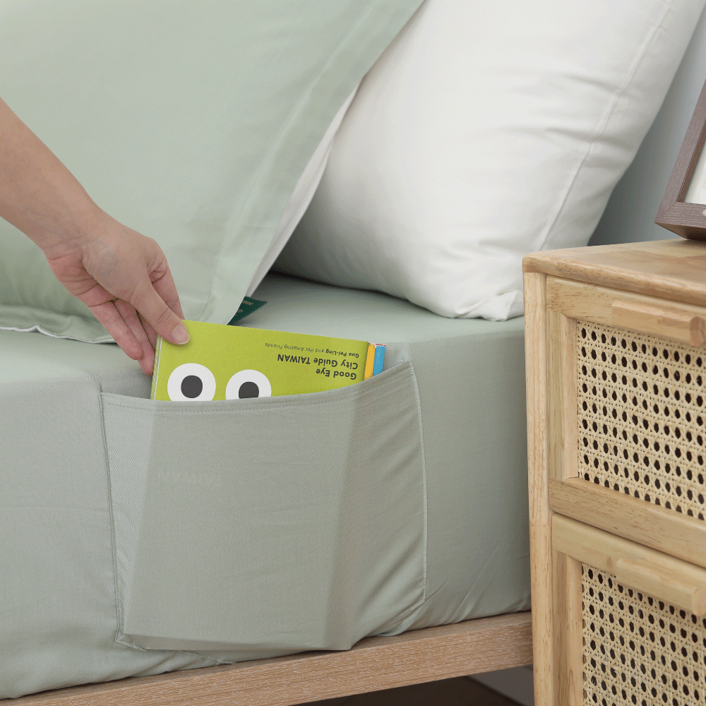 抹茶牛奶-新天絲棉床邊口袋床包被套枕套組