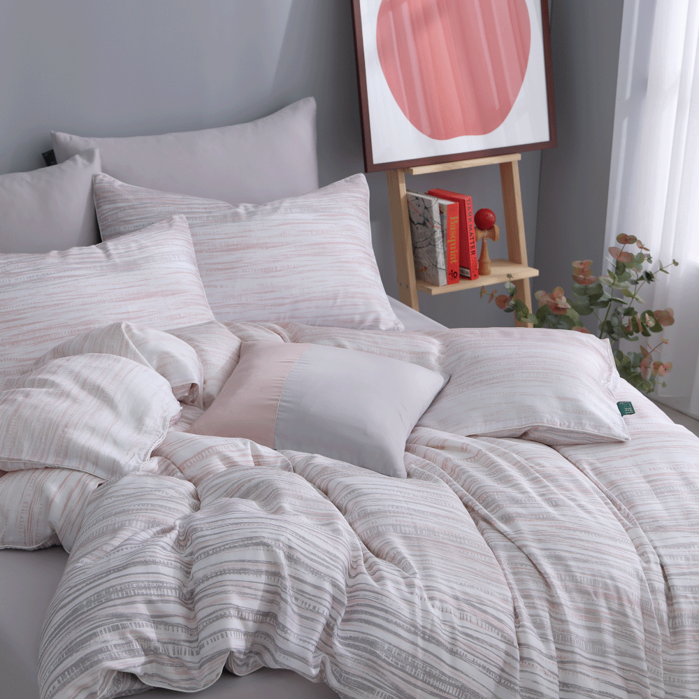千禧粉光-萊賽爾天絲床包被套枕套組