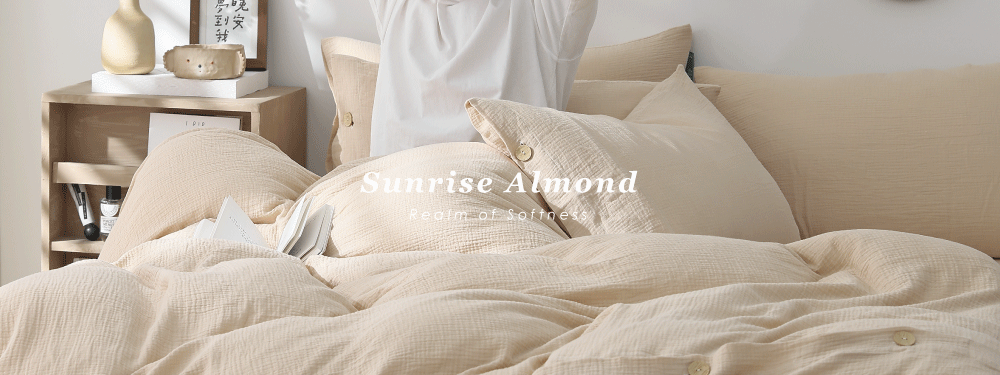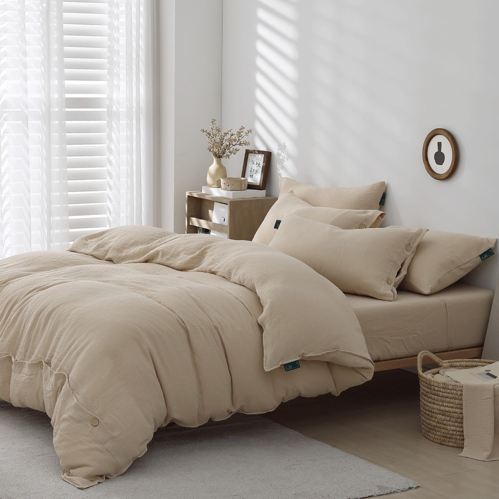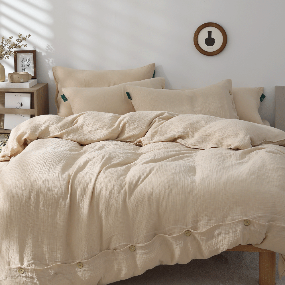朝陽暖杏-二重紗透氣床包被套枕套組