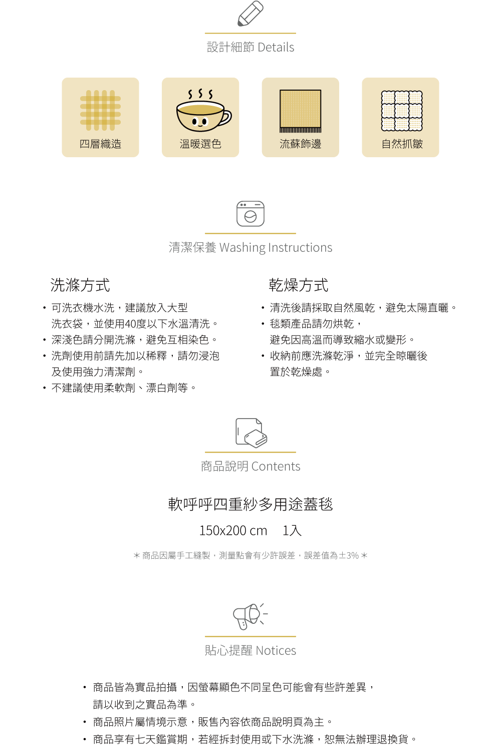 蓋毯:150x200cm 1入