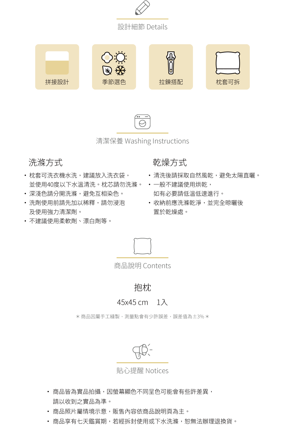 抱枕芯 - 表布:100% 聚酯纖維 / 填充物:100% 聚酯纖維