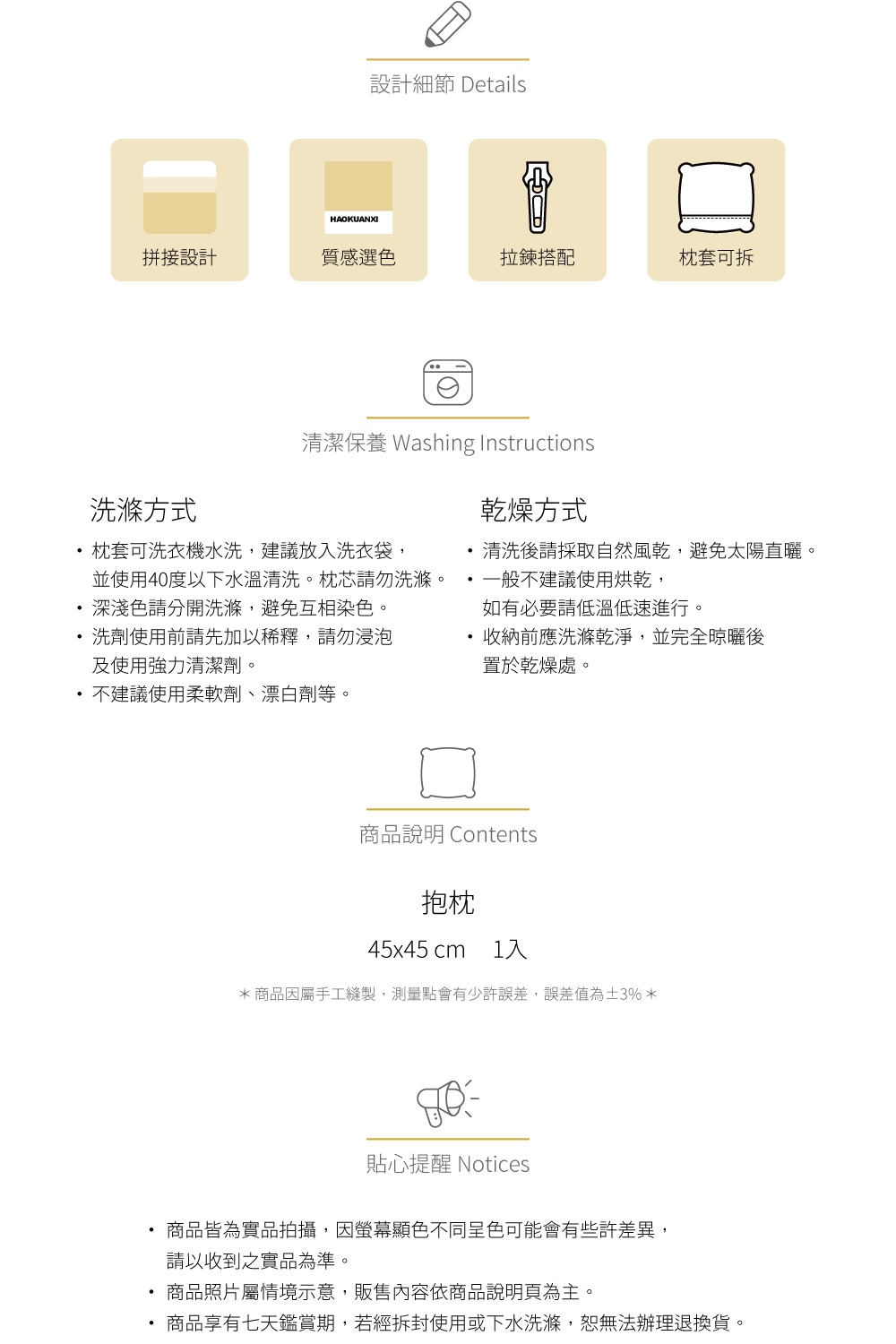 抱枕芯 - 表布:100% 聚酯纖維 / 填充物:100% 聚酯纖維