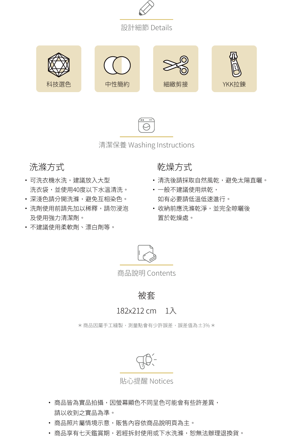 薄被套設計,如有兩用被需求,建議可以搭配品牌夏被芯使用。
