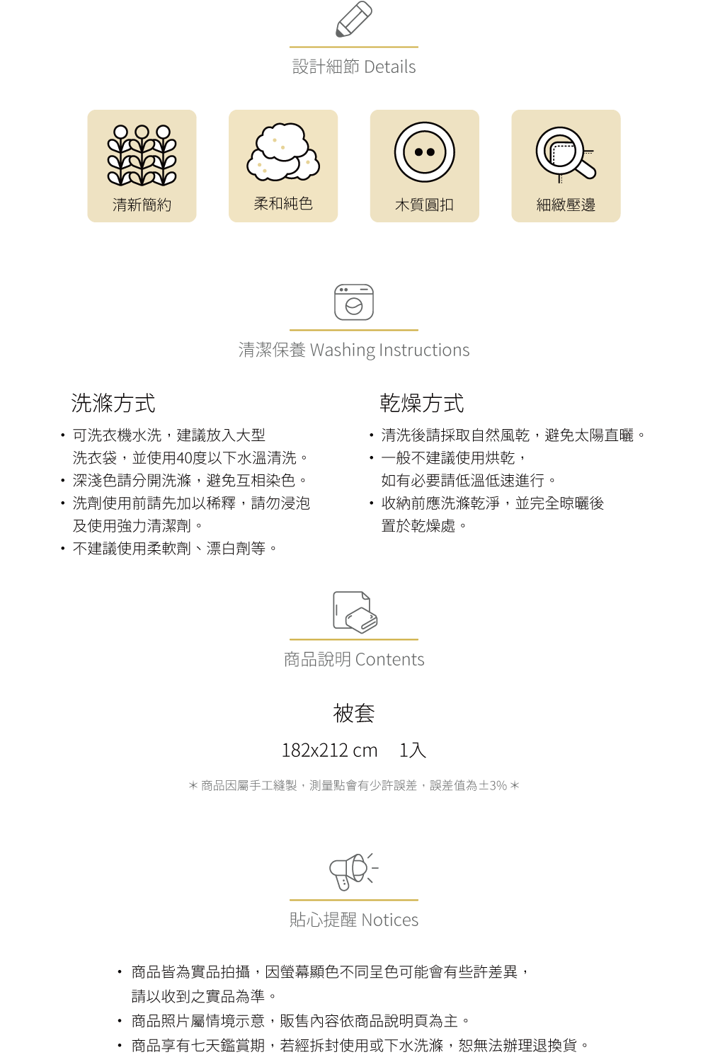 ✨ 因布料特性,被套經細緻壓邊工藝後,被套邊緣會呈現自然小波浪狀。