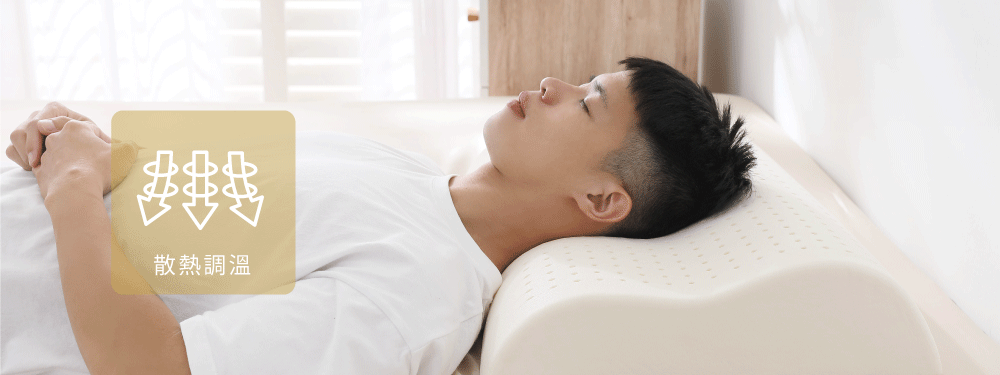 幫助在睡眠過程中散發多餘的熱氣與濕氣。像是內建天然空調系統一般,使枕頭裡面的空氣保持新鮮和健康。
