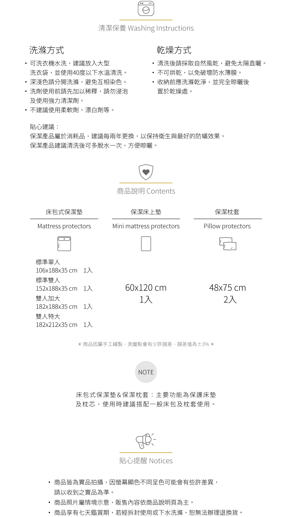 床包式保潔墊及保潔枕套主要功能為保護床墊及枕芯,