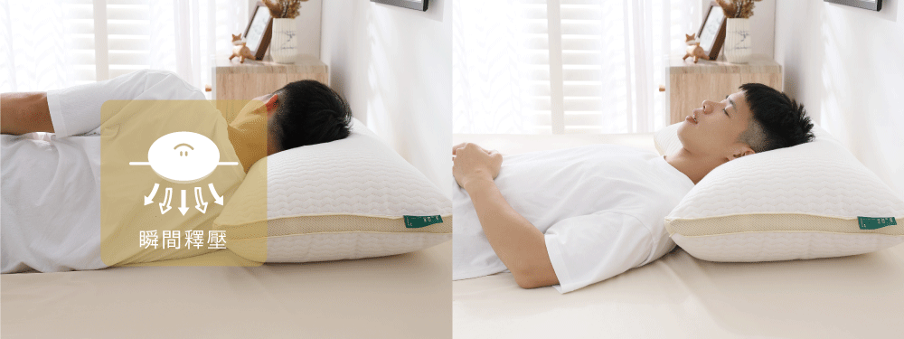 貼合頭型曲線,輕柔分散重量,釋放肩頸負擔。符合睡姿做工學型調整,正躺側躺都舒服。
