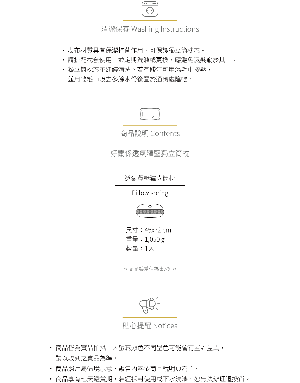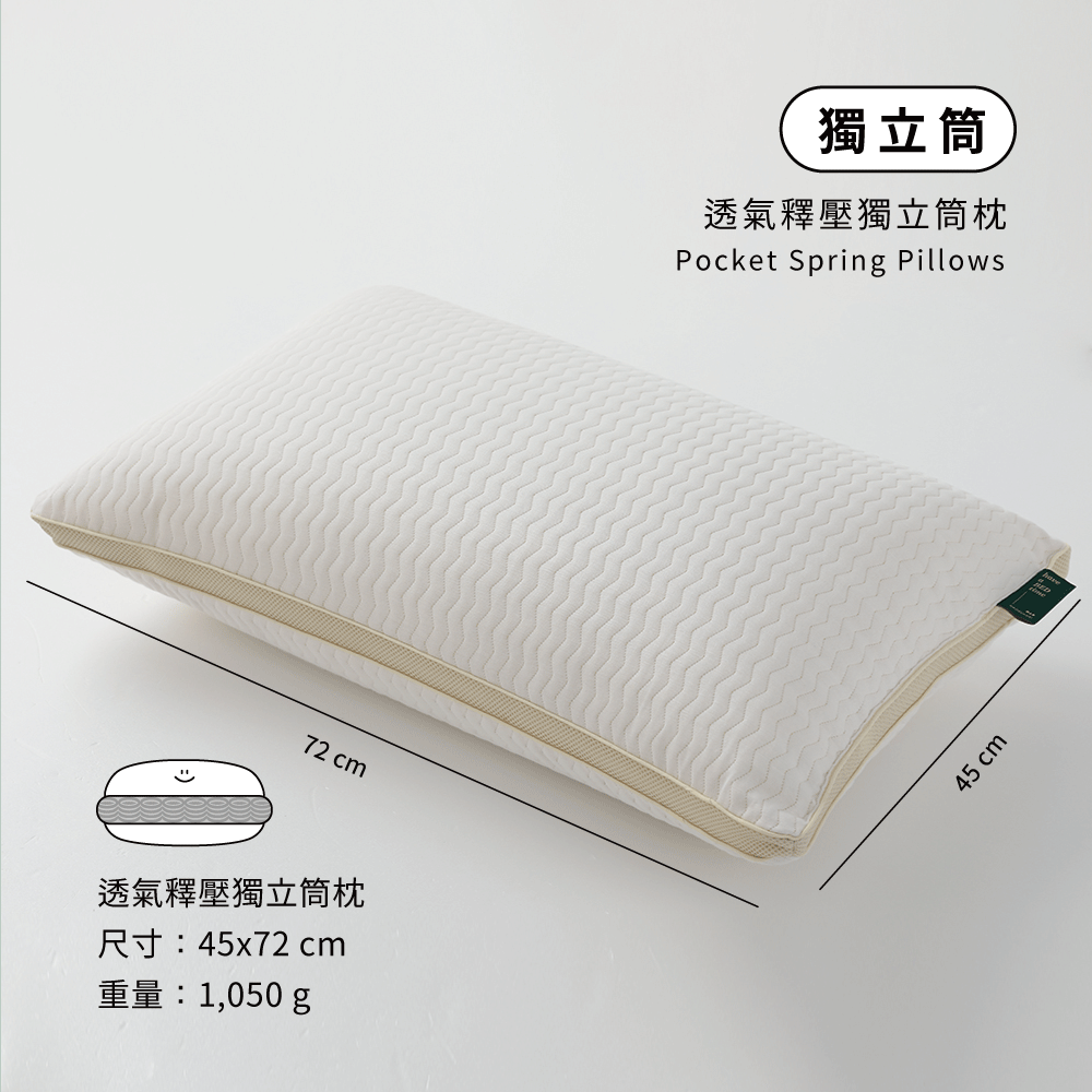 中空彈簧枕芯,增加空氣流動及散熱速度,加上側邊3D透氣網狀設計,是一顆會呼吸的枕頭。