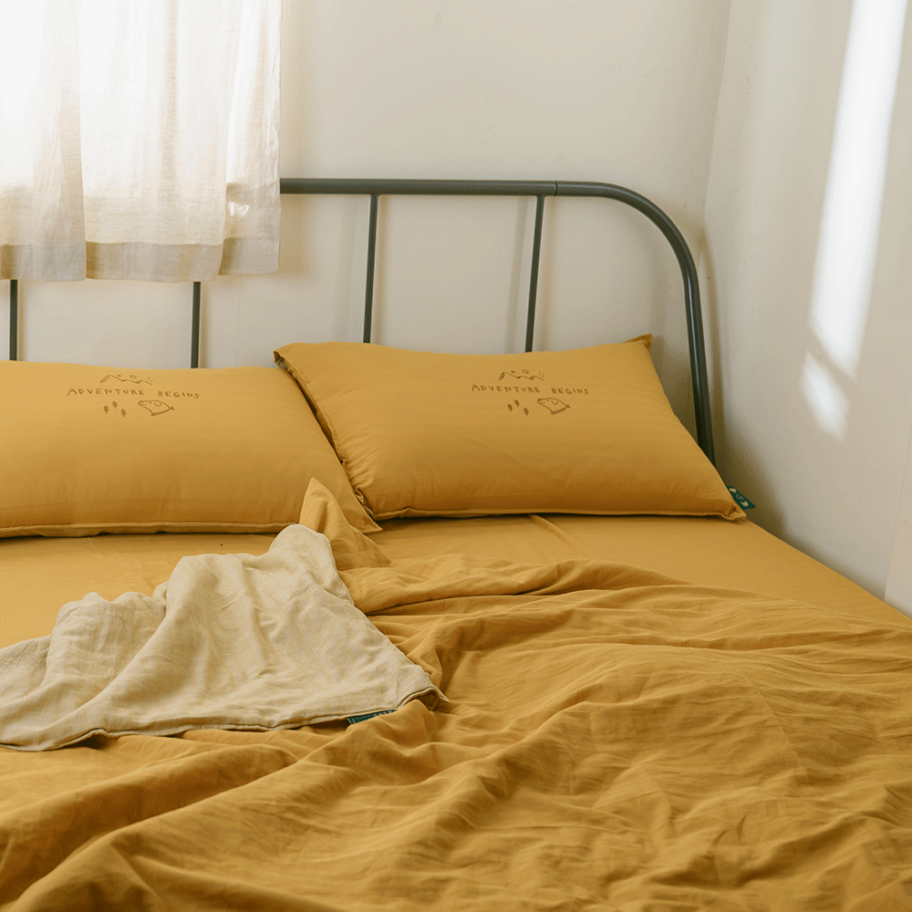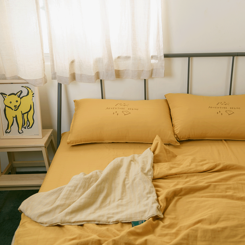 組合內含:床包 1 入、枕套 2 入、聯名卡片 1 入,聯名禮盒包裝。