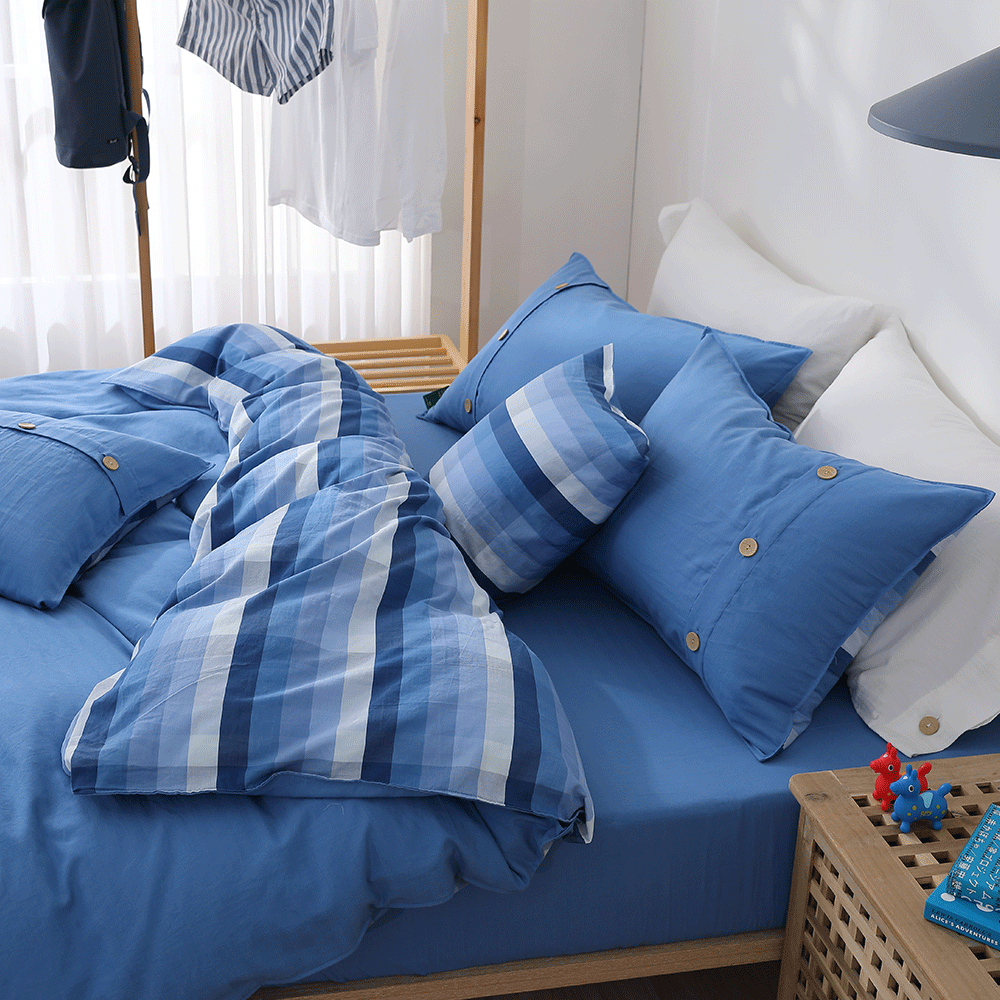好關係 HAOKUANXI|悠遊海洋-天然色織棉床包枕套組 (單人/雙人/雙人加大)