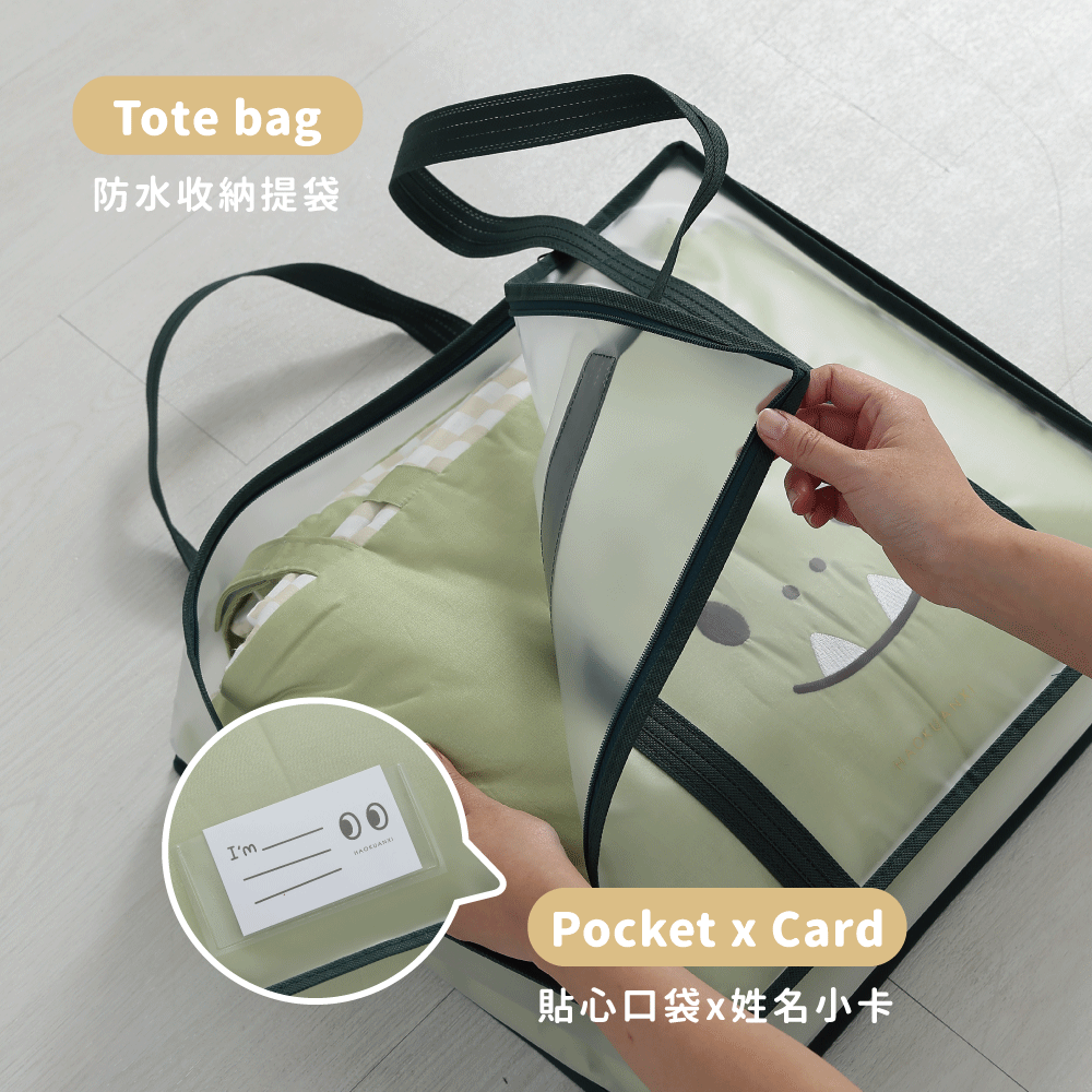 睡袋組收納後可放進隨附防水提袋,防水提袋規格為35x40x17cm。