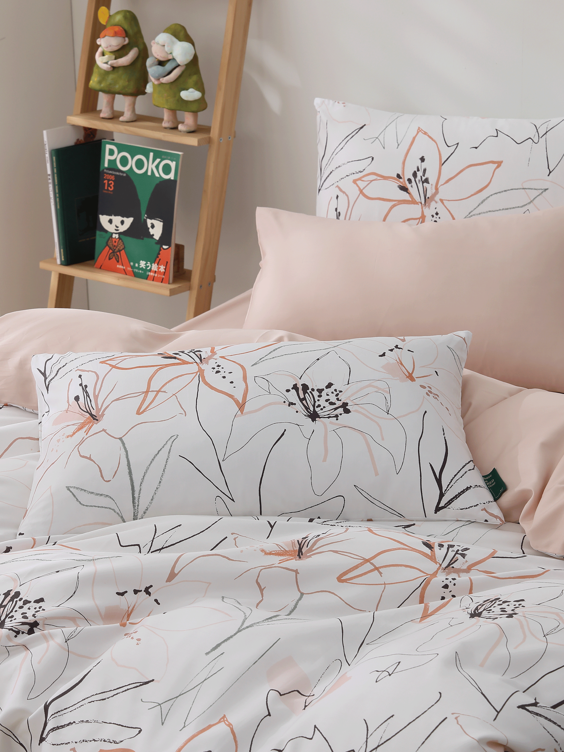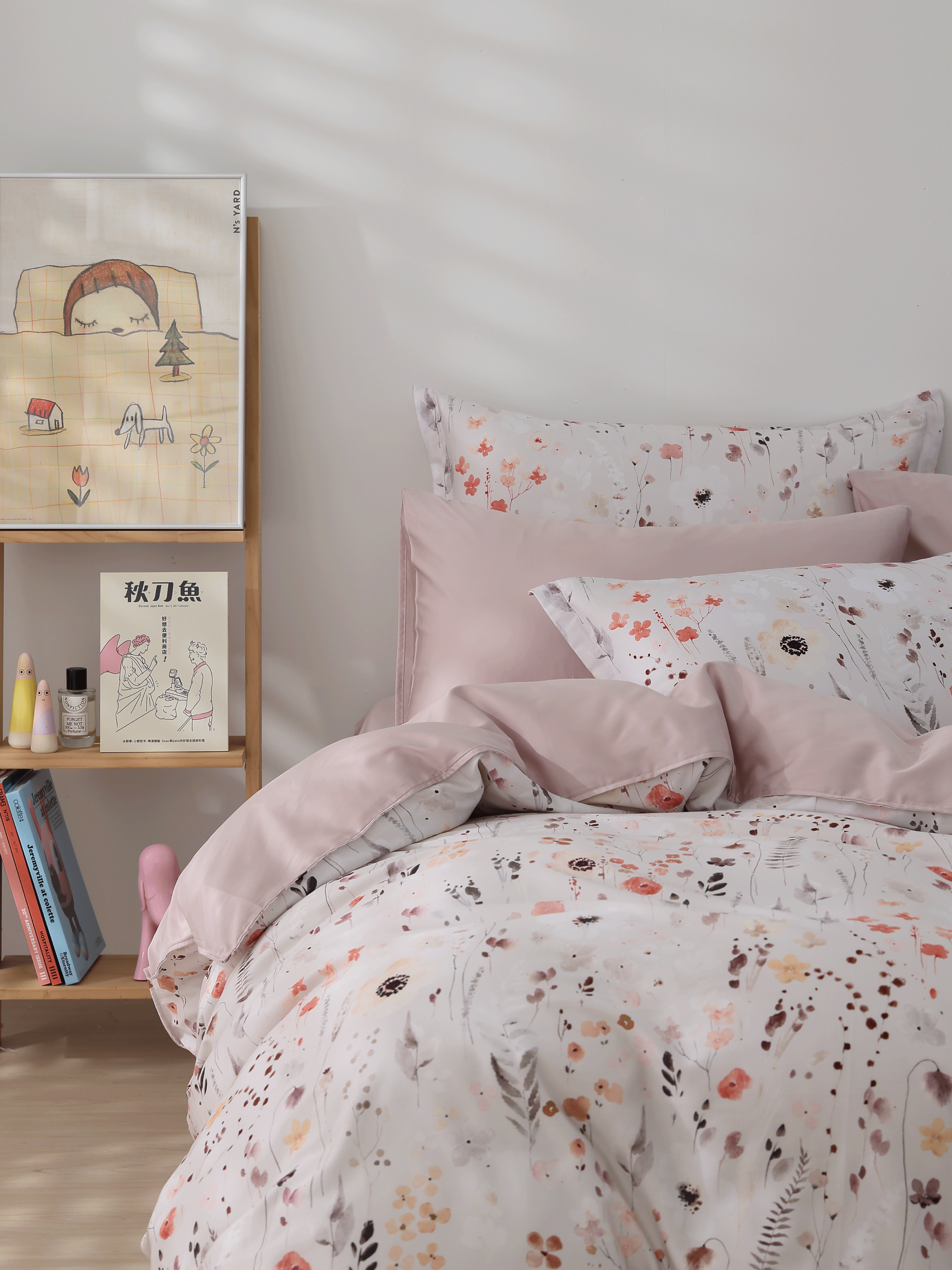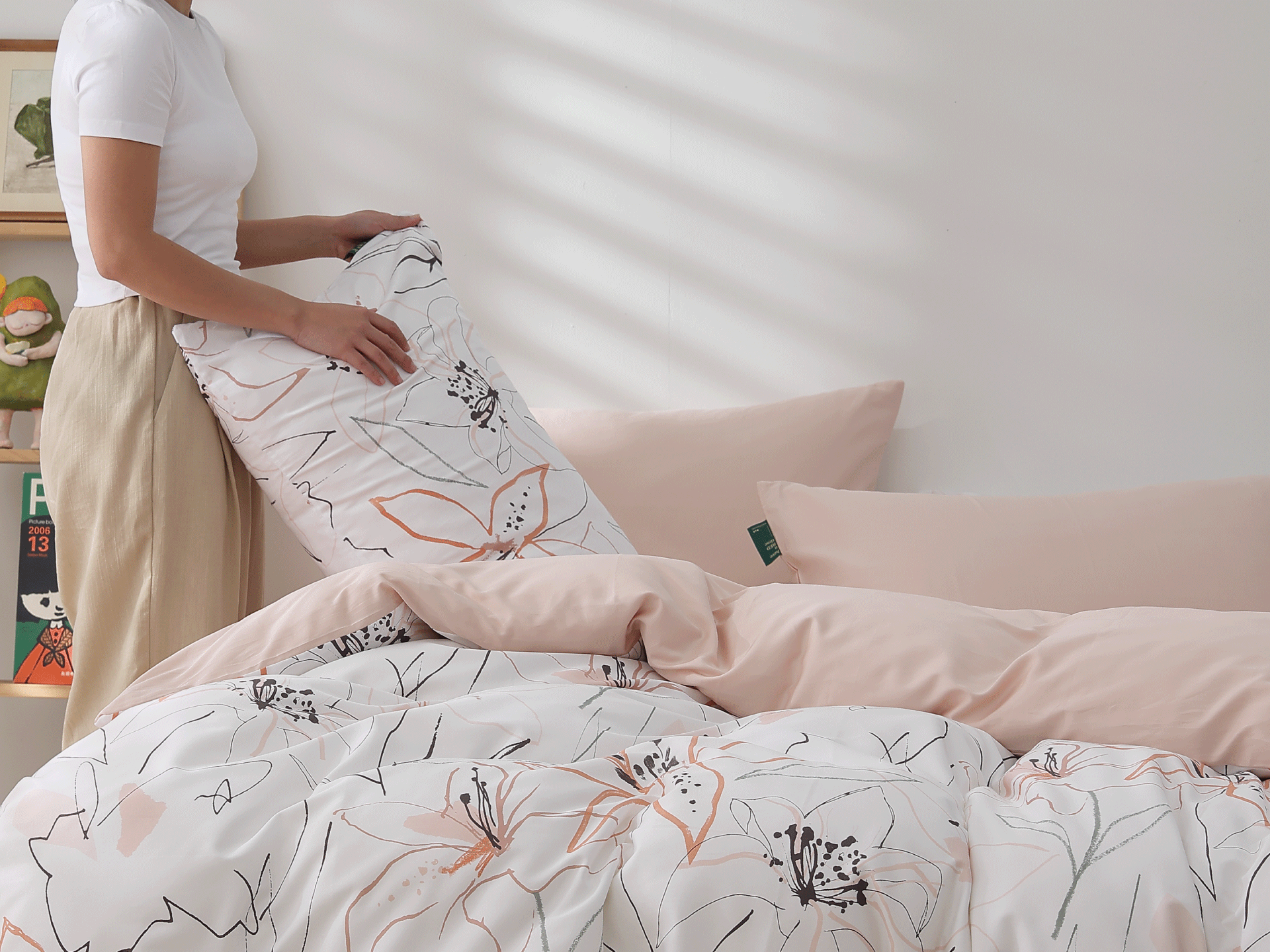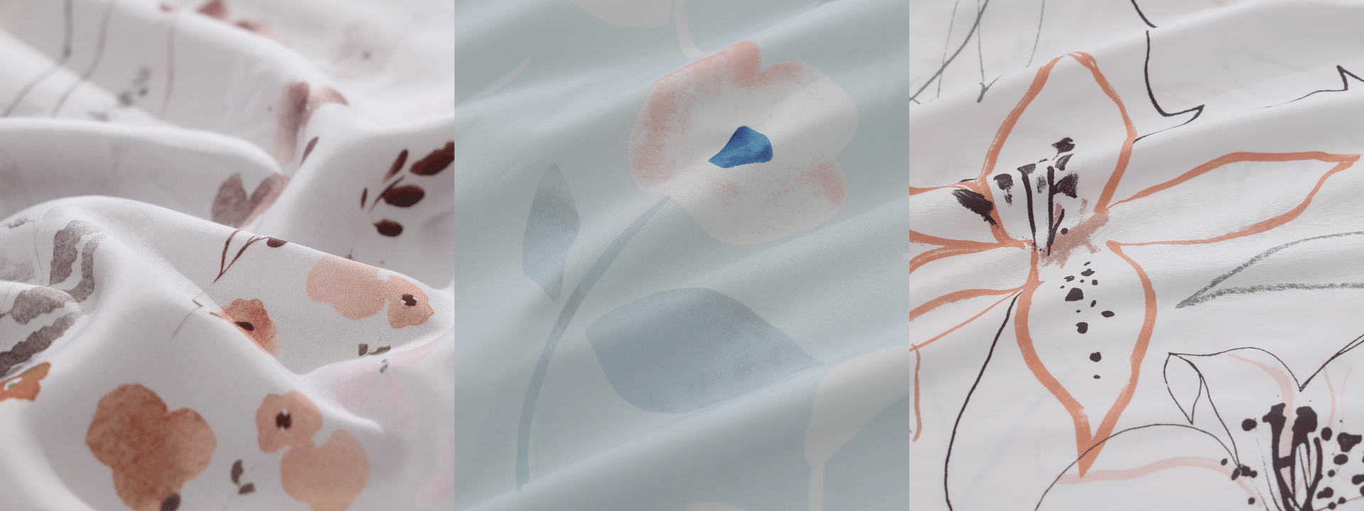 每個人都有屬於自己的故事,在時間的流動中經歷、積累與釋放,逐漸形塑出今日的模樣。《此刻花緒》透過三種花型,描繪三種人生階段的自我狀態 —— 自由探索的「初綻」、自信綻放的「盛放」、洗鍊沉靜的「簡顯」。它不只是寢具的設計,更是關於你生命歷程的片段剪影,一種與自我對話的柔性語言。